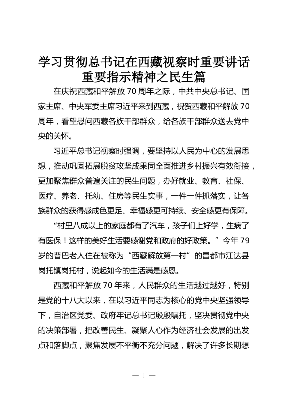學習貫徹總書記在西藏視察時重要講話重要指示精神之民生篇