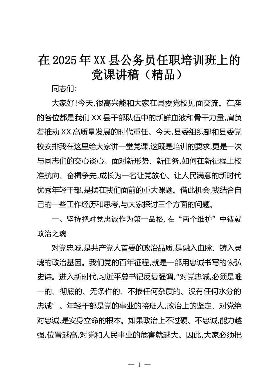 在2025年XX縣公務(wù)員任職培訓(xùn)班上的黨課講稿(精品)