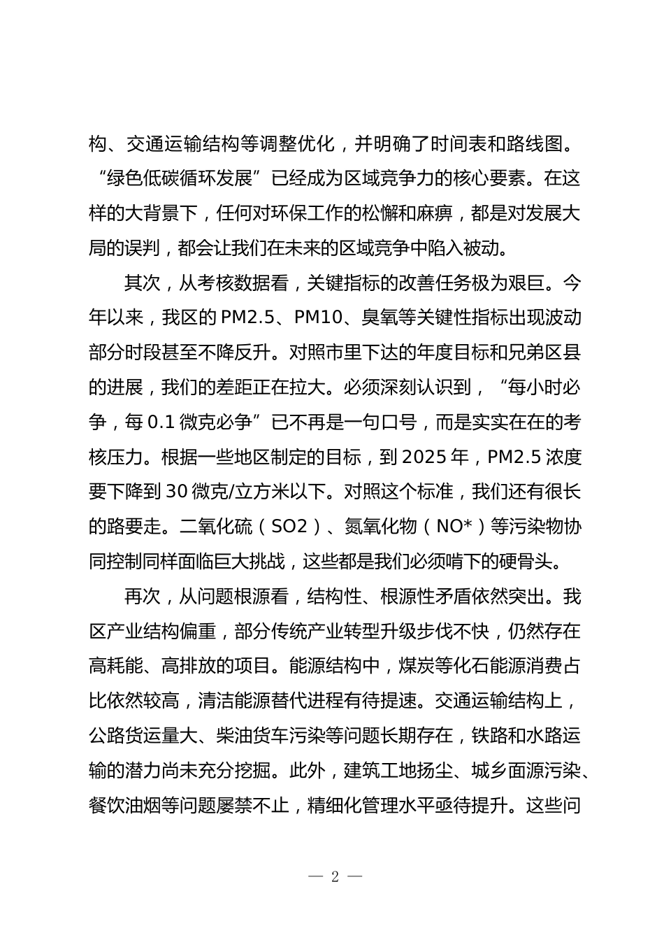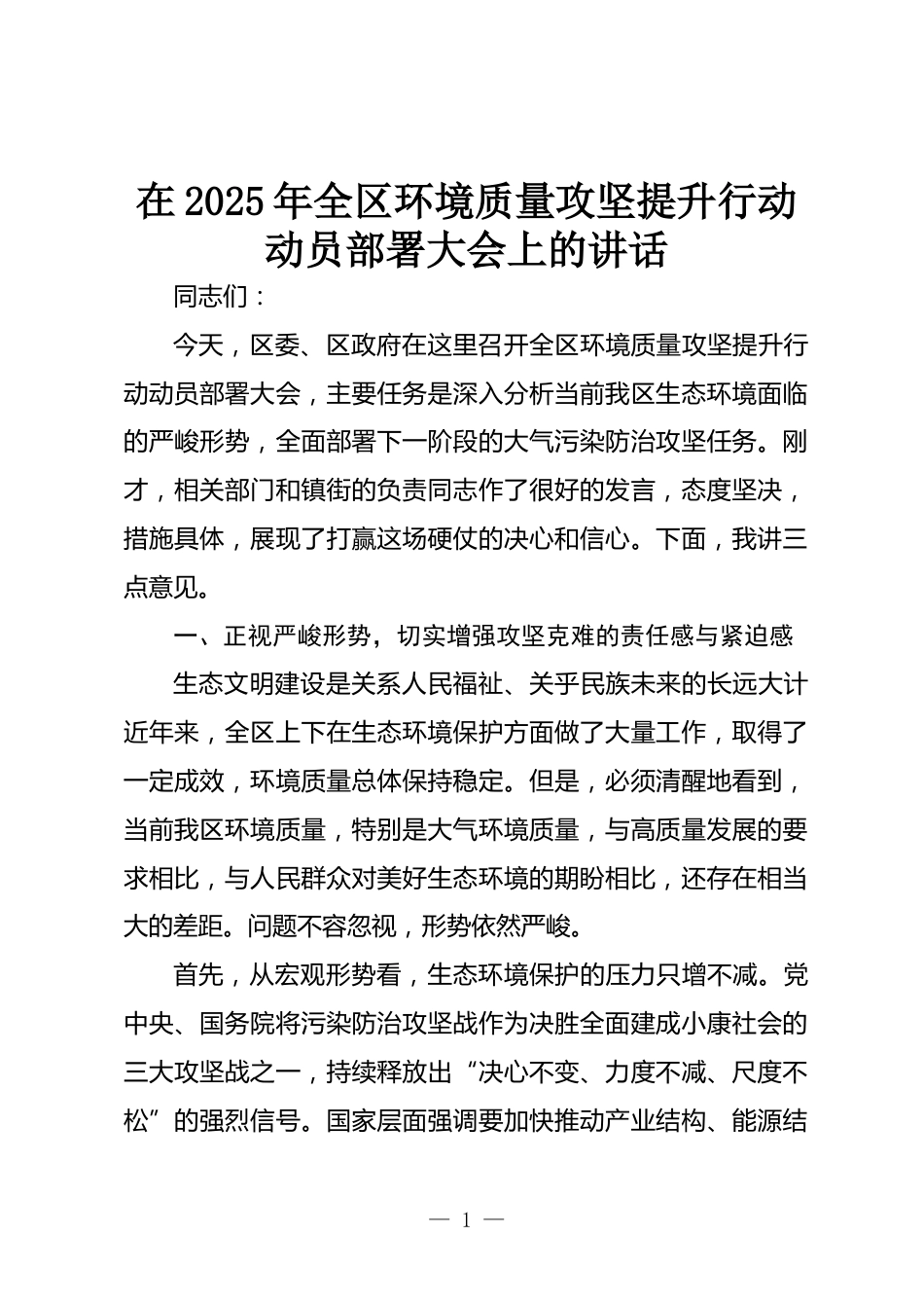 在2025年全區(qū)環(huán)境質(zhì)量攻堅(jiān)提升行動(dòng)動(dòng)員部署大會(huì)上的講話