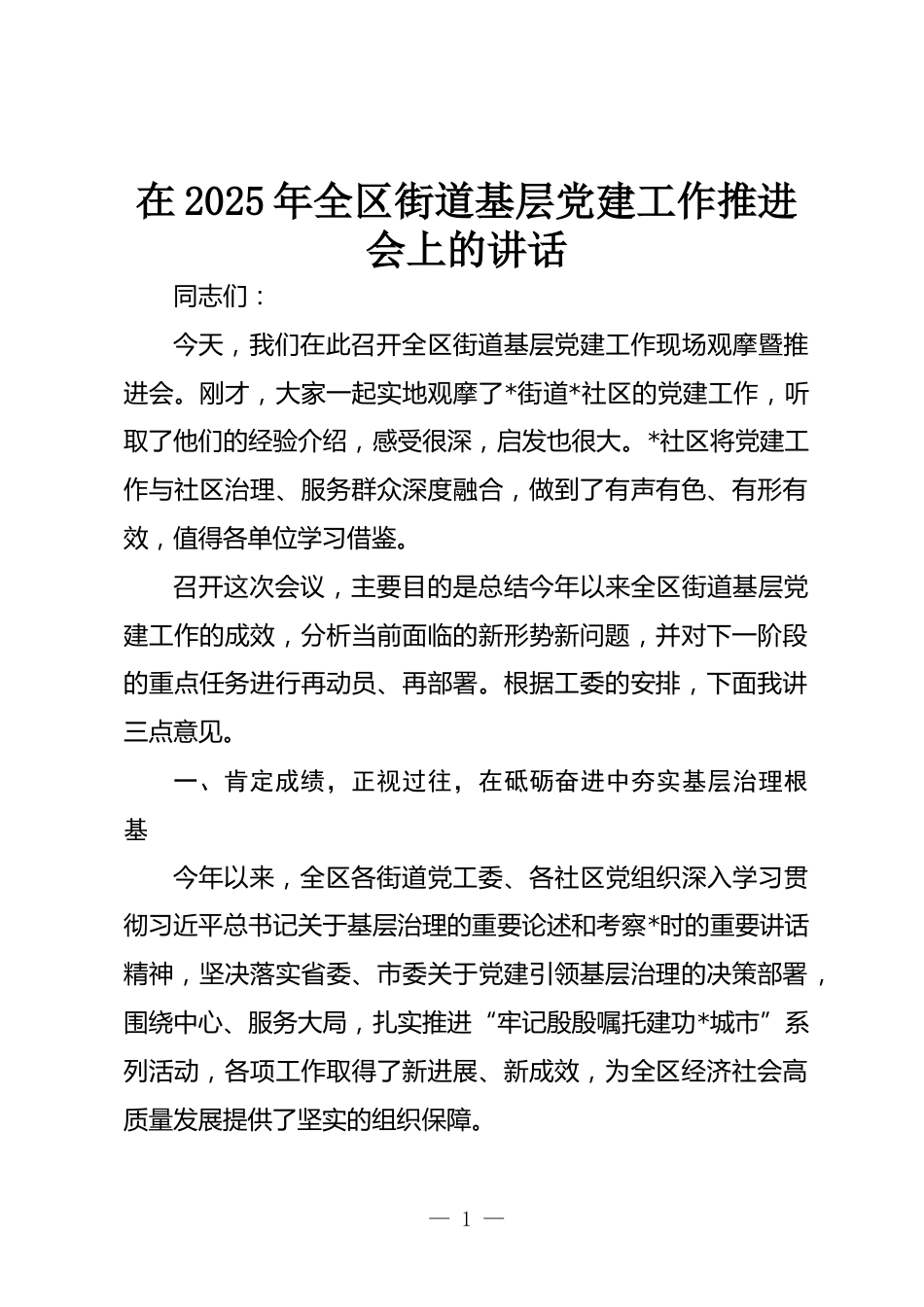 在2025年全區(qū)街道基層黨建工作推進(jìn)會(huì)上的講話