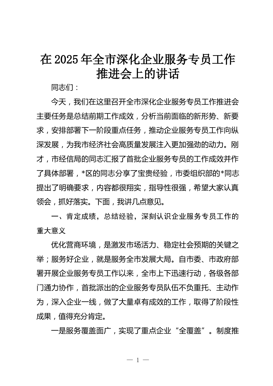 在2025年全市深化企業(yè)服務專員工作推進會上的講話