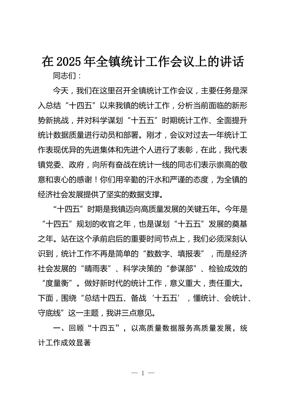 在2025年全鎮(zhèn)統(tǒng)計工作會議上的講話