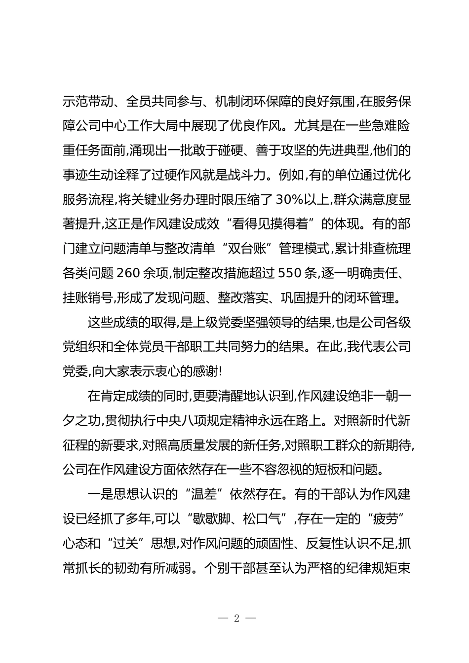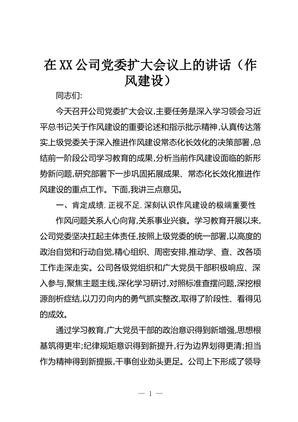在XX公司黨委擴(kuò)大會(huì)議上的講話(作風(fēng)建設(shè))