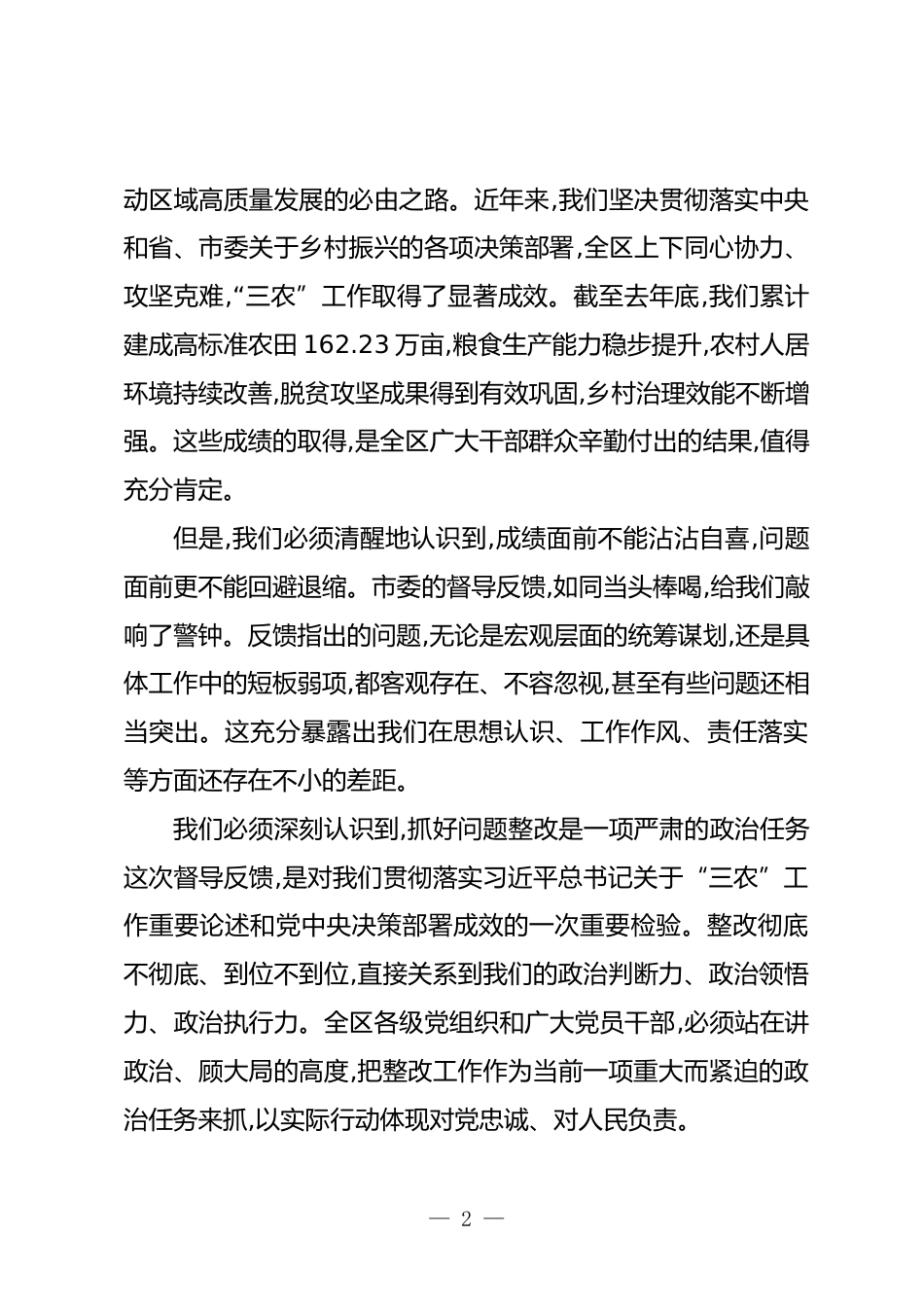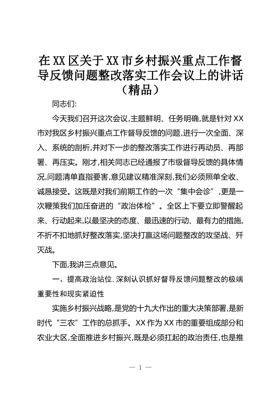在XX區(qū)關(guān)于XX市鄉(xiāng)村振興重點工作督導反饋問題整改落實工作會議上的講話(精品)