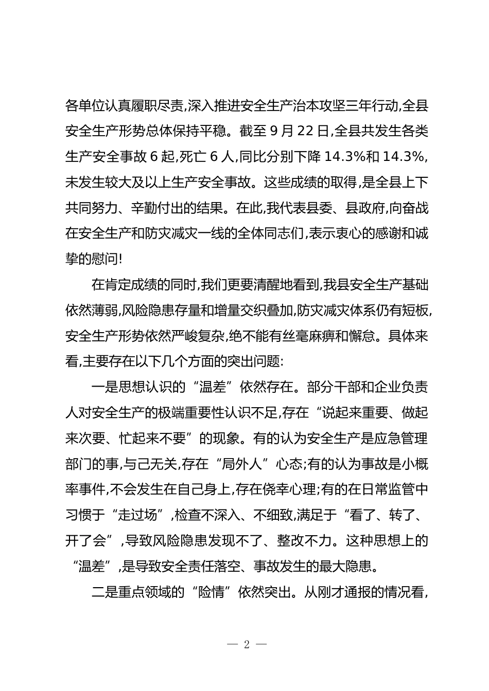 在XX縣2025年安全生產(chǎn)暨防災減災救災委員會第六次全體會議上的講話(精品)同志們:今天我們召開全縣安全生產(chǎn)暨防災減災救災委員會第六次全體會議,主要任務是深入學習貫徹總書記關(guān)于安全生產(chǎn)和防災減災救災工作的重要指示批示精神,認真分析當前我縣面臨的嚴峻形勢,總結(jié)前三季度工作,安排部署第四季度重點任務。剛才,XXX同志傳達了上級有關(guān)精神,XXX同志通報了近期全縣安全生產(chǎn)和防災減災救災工作情況,特別是當前道路交通領域存在的突出問題,相關(guān)單位也作了很好的交流發(fā)言,我都表示贊同。今年是實現(xiàn)“十四五”規(guī)劃目標任務的關(guān)鍵一年,做好第四季度的工作,意義非凡、責任重大...