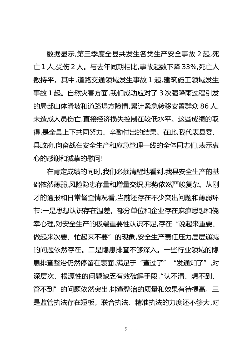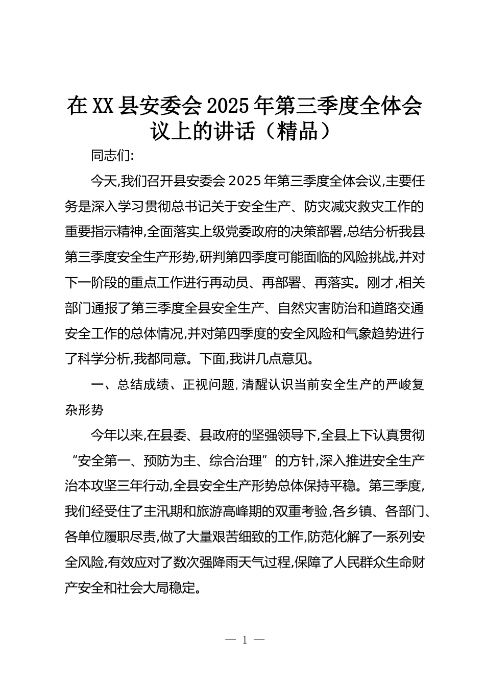 在XX縣安委會(huì)2025年第三季度全體會(huì)議上的講話(精品)