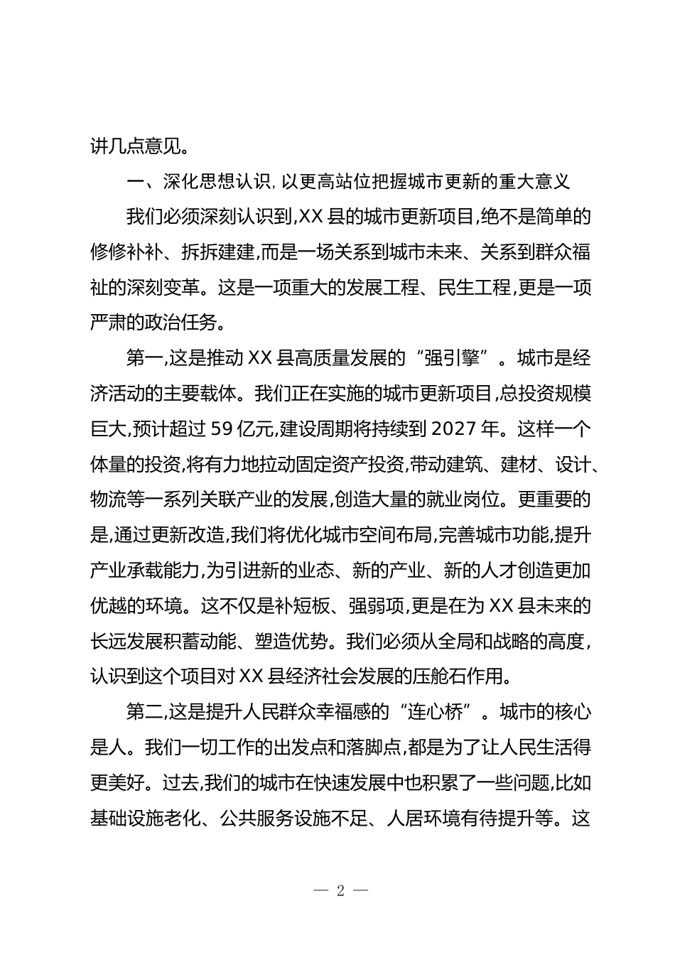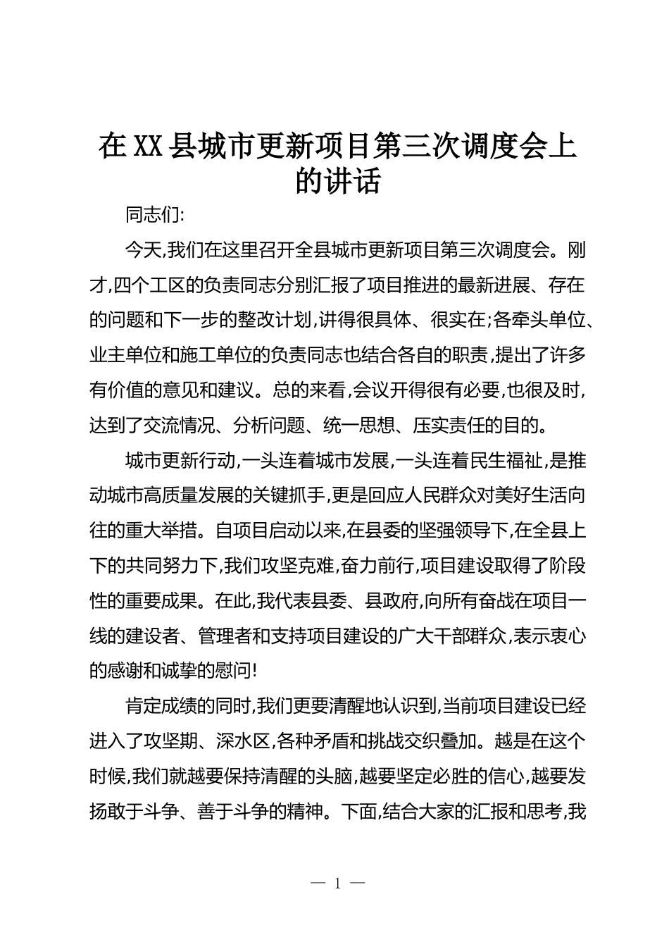 在XX縣城市更新項(xiàng)目第三次調(diào)度會(huì)上的講話