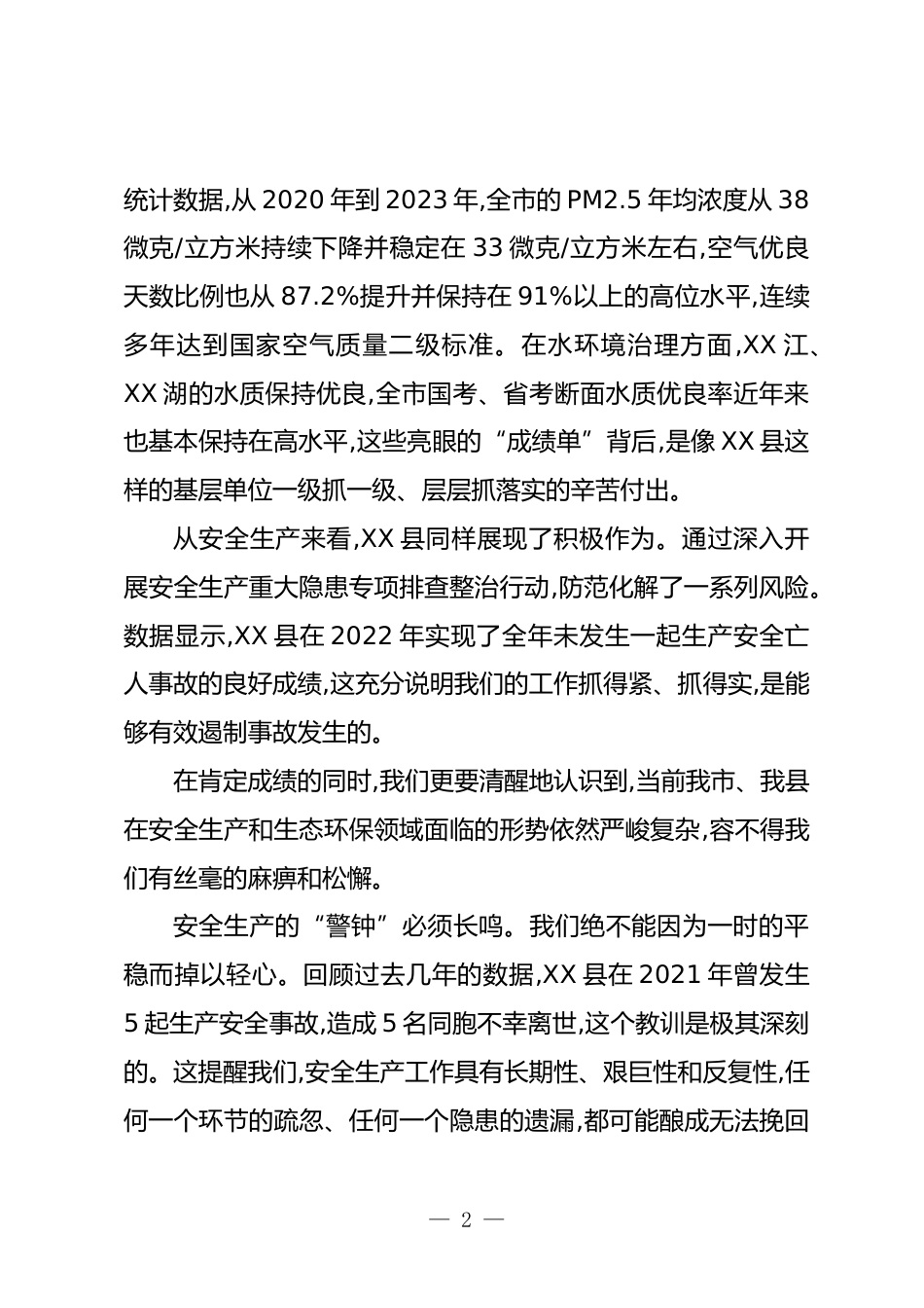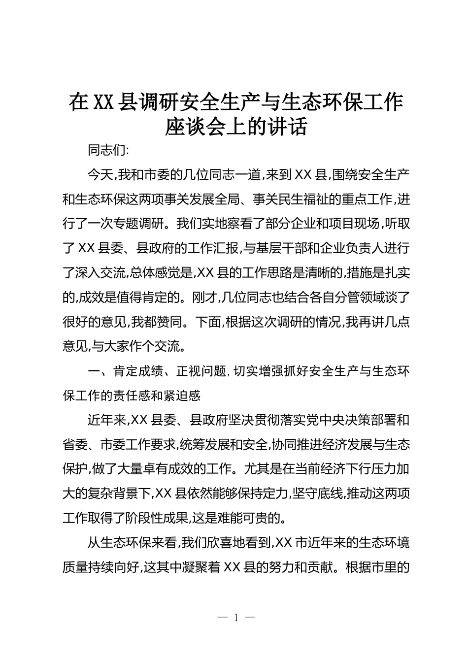 在XX縣調(diào)研安全生產(chǎn)與生態(tài)環(huán)保工作座談會上的講話