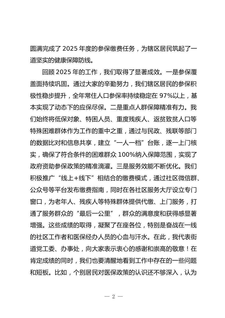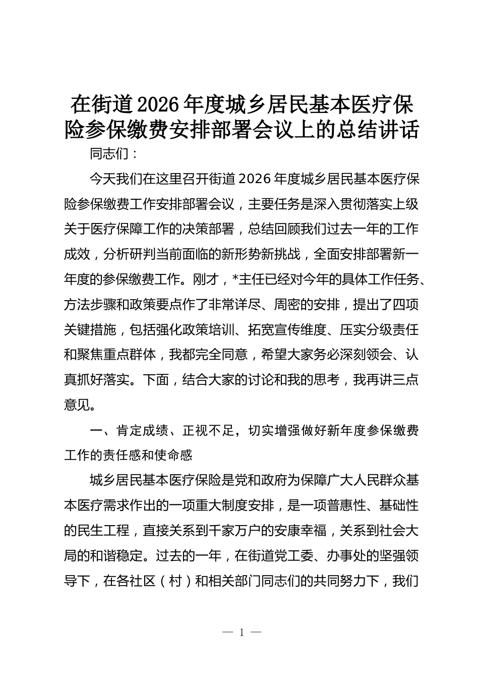 在街道2026年度城鄉(xiāng)居民基本醫(yī)療保險(xiǎn)參保繳費(fèi)安排部署會(huì)議上的總結(jié)講話