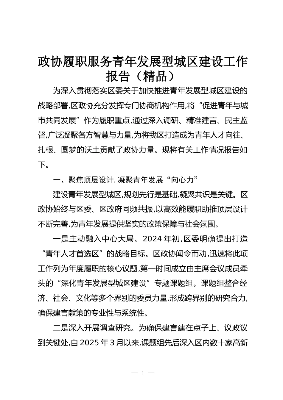 政協(xié)履職服務(wù)青年發(fā)展型城區(qū)建設(shè)工作報告(精品)
