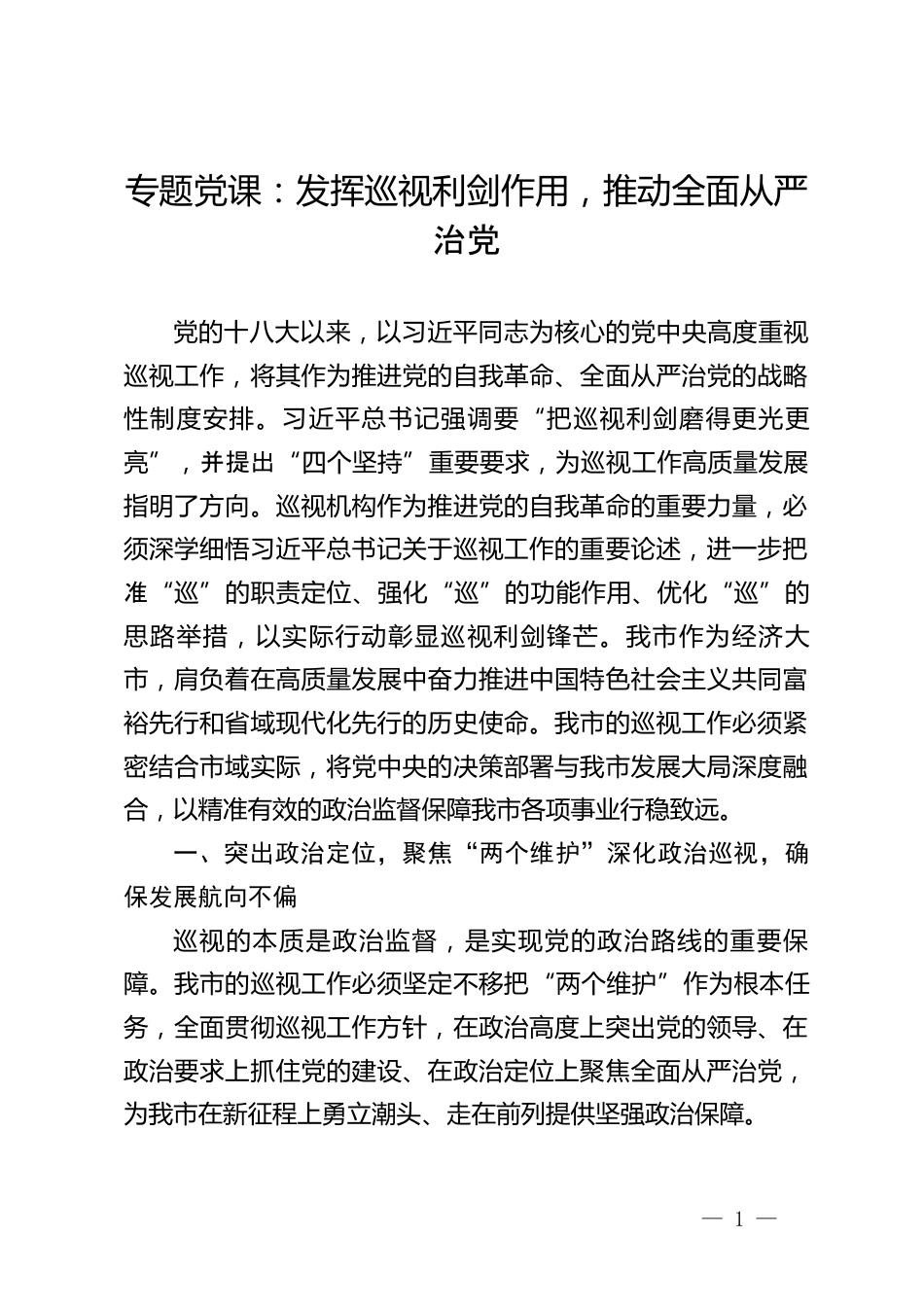 專題黨課:發(fā)揮巡視利劍作用,推動(dòng)全面從嚴(yán)治黨