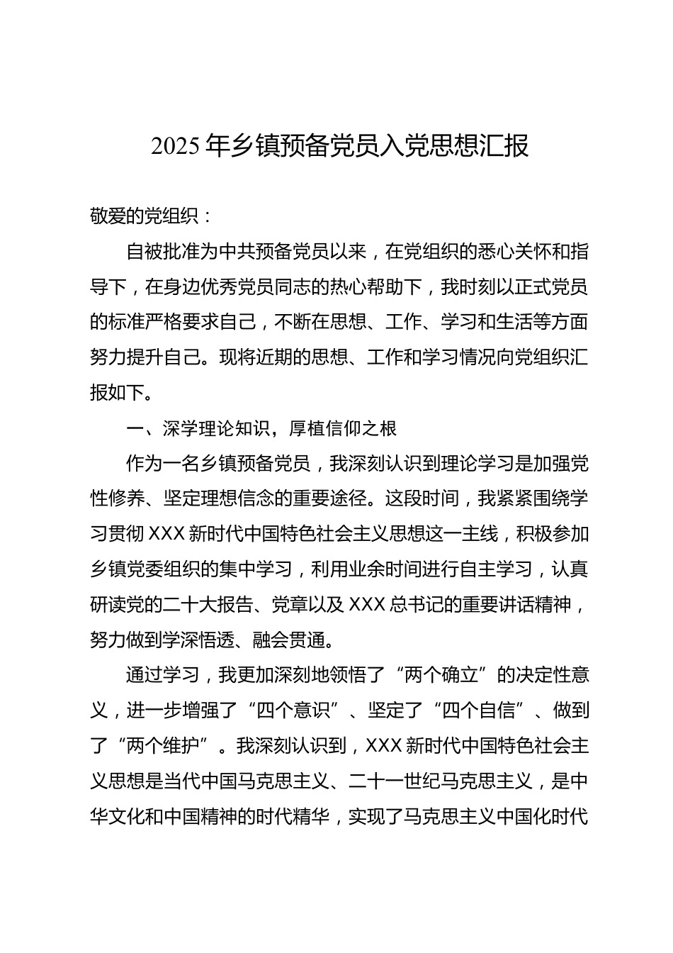 2025 年鄉(xiāng)鎮(zhèn)預備黨員入黨思想?yún)R報