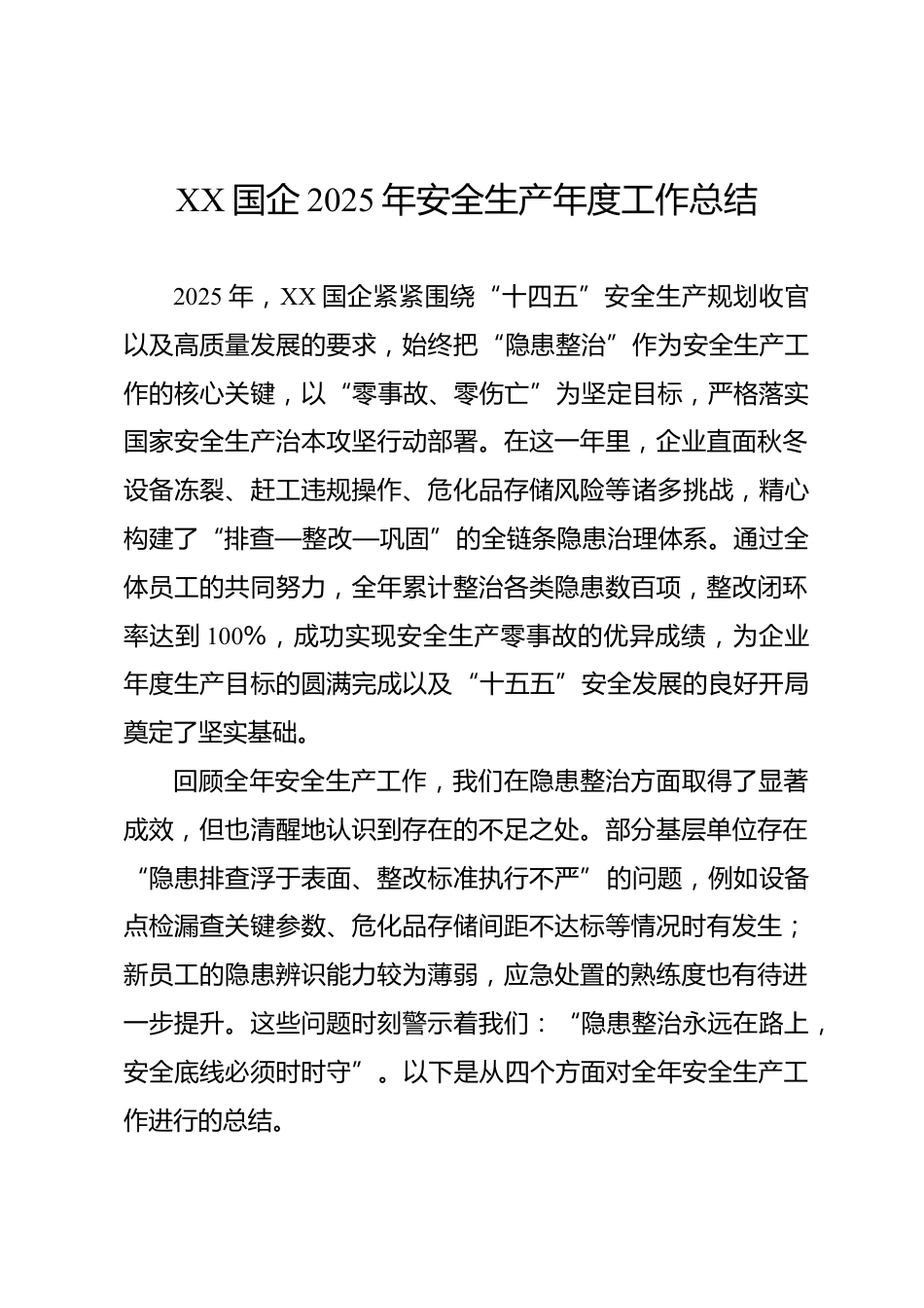 XX國企2025年安全生產(chǎn)年度工作總結(jié)