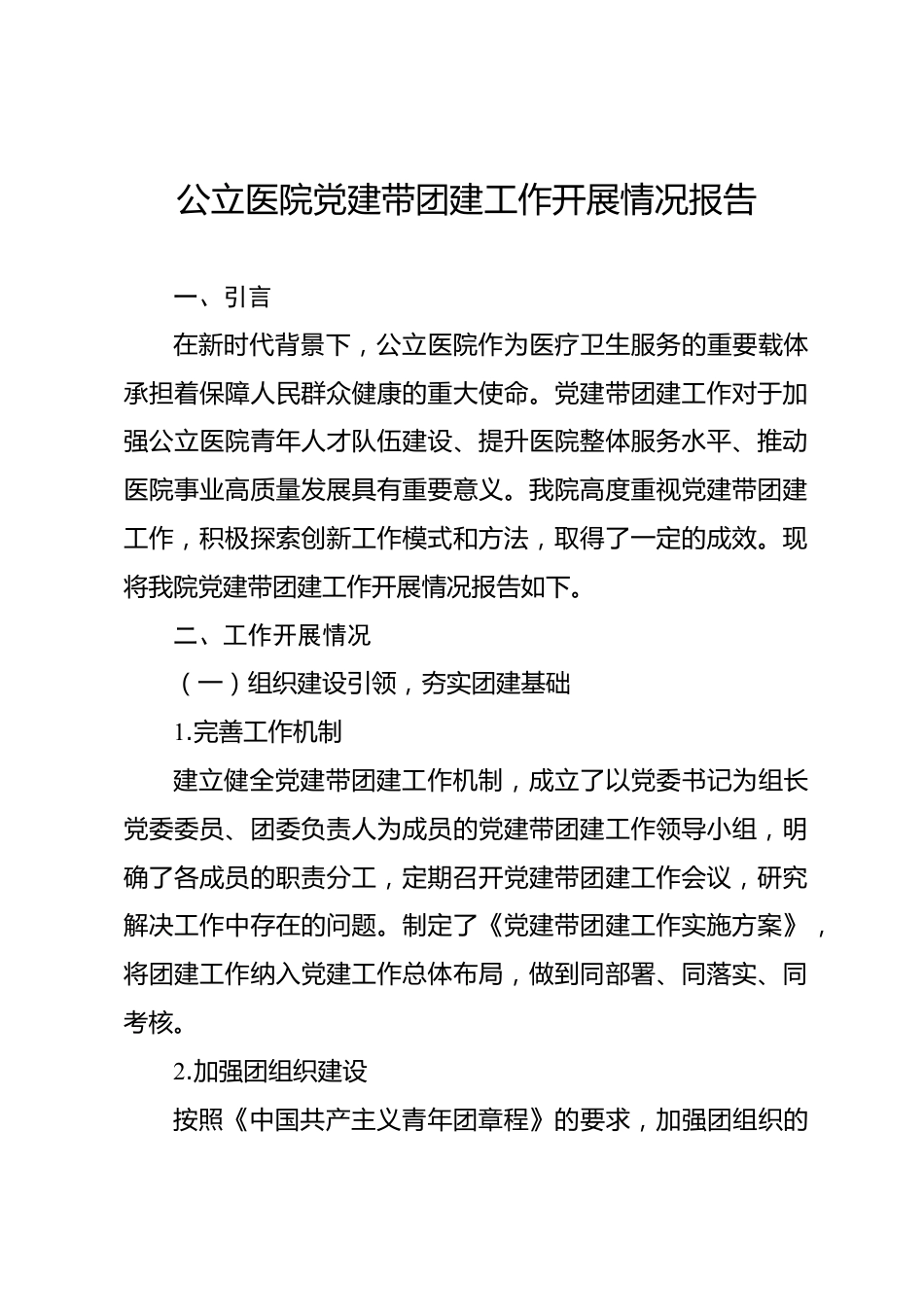 公立醫(yī)院黨建帶團建工作開展情況報告