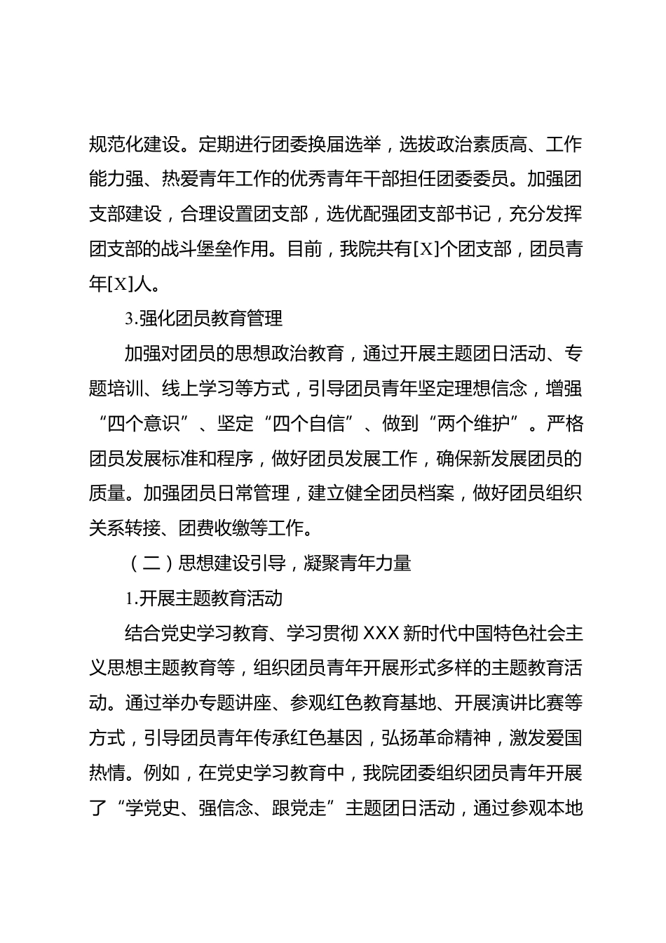公立醫(yī)院黨建帶團建工作開展情況報告一、引言在新時代背景下,公立醫(yī)院作為醫(yī)療衛(wèi)生服務的重要載體承擔著保障人民群眾健康的重大使命。黨建帶團建工作對于加強公立醫(yī)院青年人才隊伍建設、提升醫(yī)院整體服務水平、推動醫(yī)院事業(yè)高質(zhì)量發(fā)展具有重要意義。我院高度重視黨建帶團建工作,積極探索創(chuàng)新工作模式和方法,取得了一定的成效。現(xiàn)將我院黨建帶團建工作開展情況報告如下。二、工作開展情況(一)組織建設引領,夯實團建基礎1.完善工作機制建立健全黨建帶團建工作機制,成立了以黨委書記為組長黨委委員、團委負責人為成員的黨建帶團建工作領導小組,明確了各成員的職責分...
