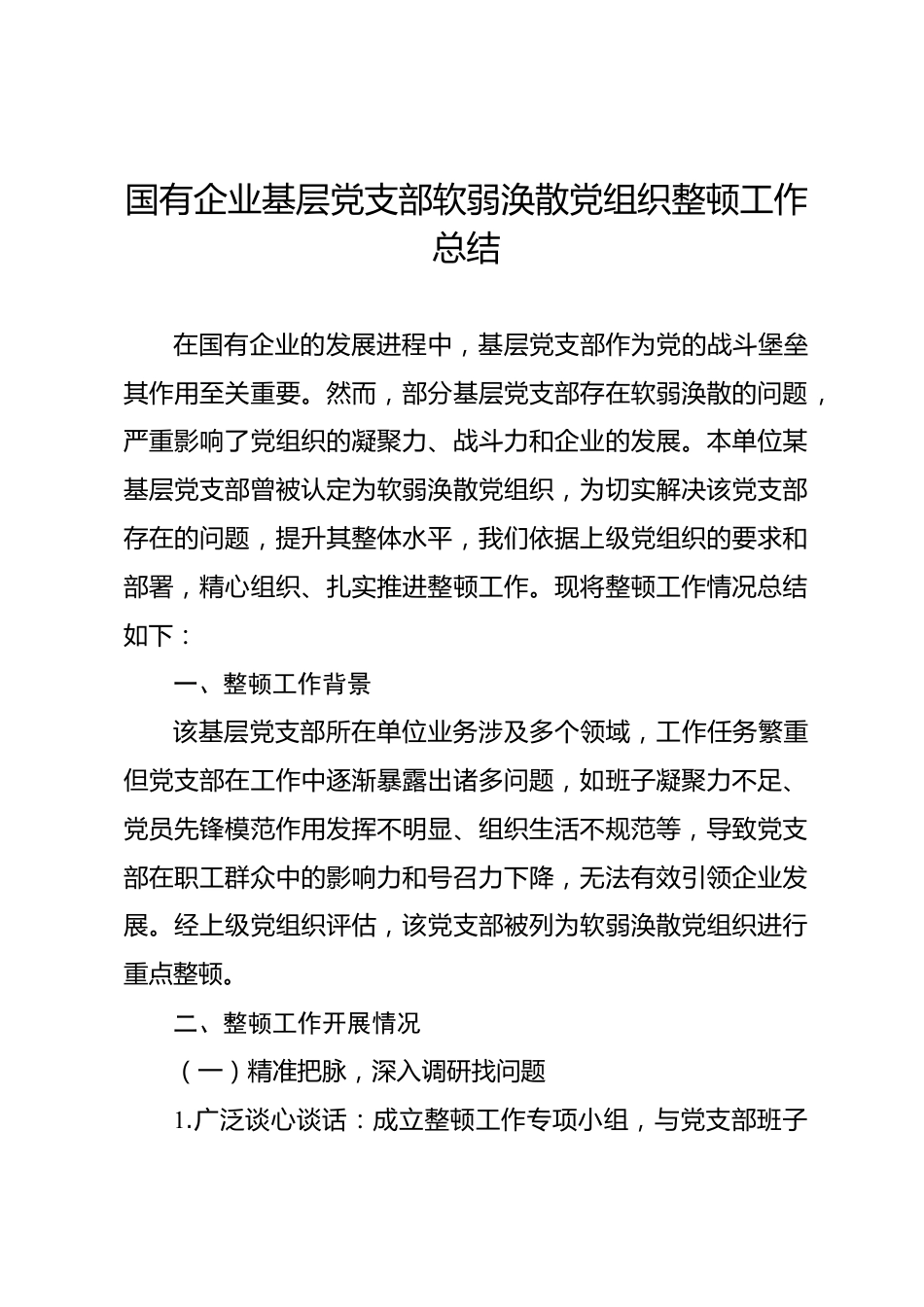國(guó)有企業(yè)基層黨支部軟弱渙散黨組織整頓工作總結(jié)
