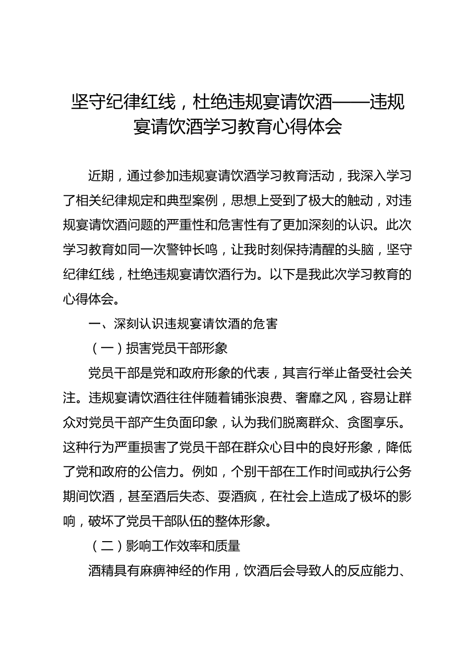 堅守紀律紅線,杜絕違規(guī)宴請飲酒——違規(guī)宴請飲酒學(xué)習(xí)教育心得體會