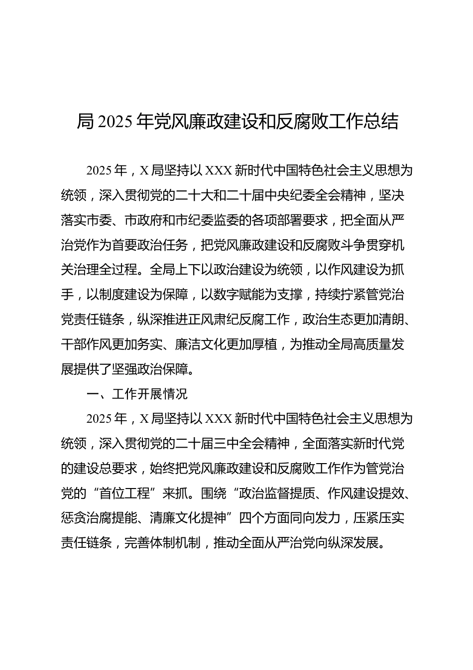 局2025年黨風廉政建設(shè)和反腐敗工作總結(jié)