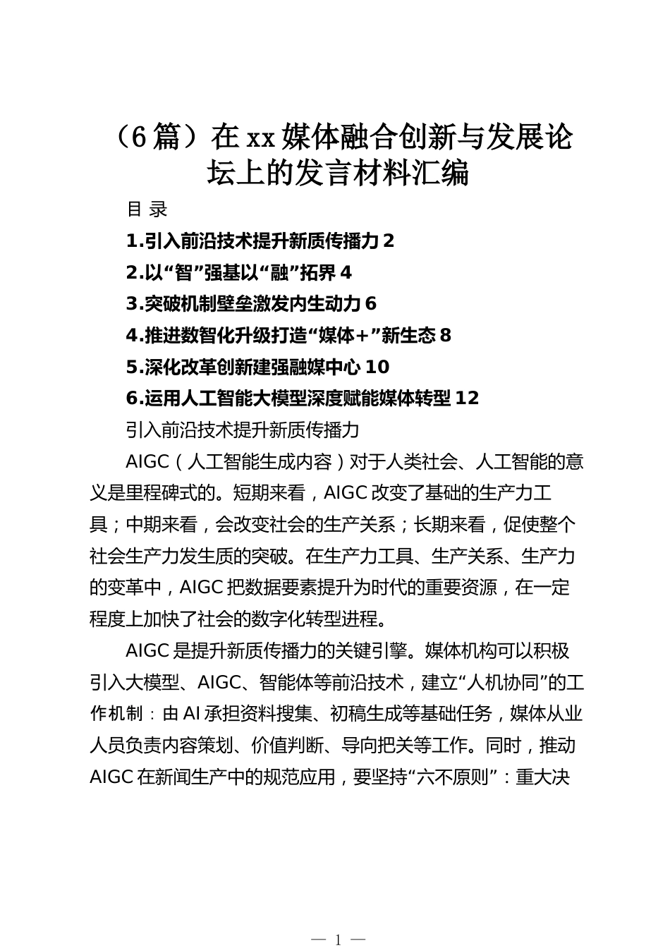 (6篇)在xx媒體融合創(chuàng)新與發(fā)展論壇上的發(fā)言材料匯編