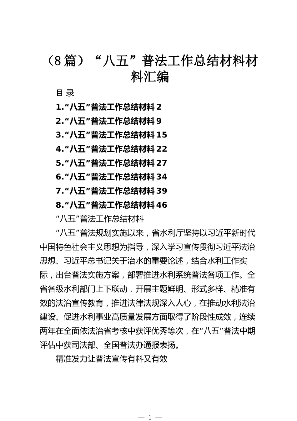 (8篇)“八五”普法工作總結(jié)材料材料匯編