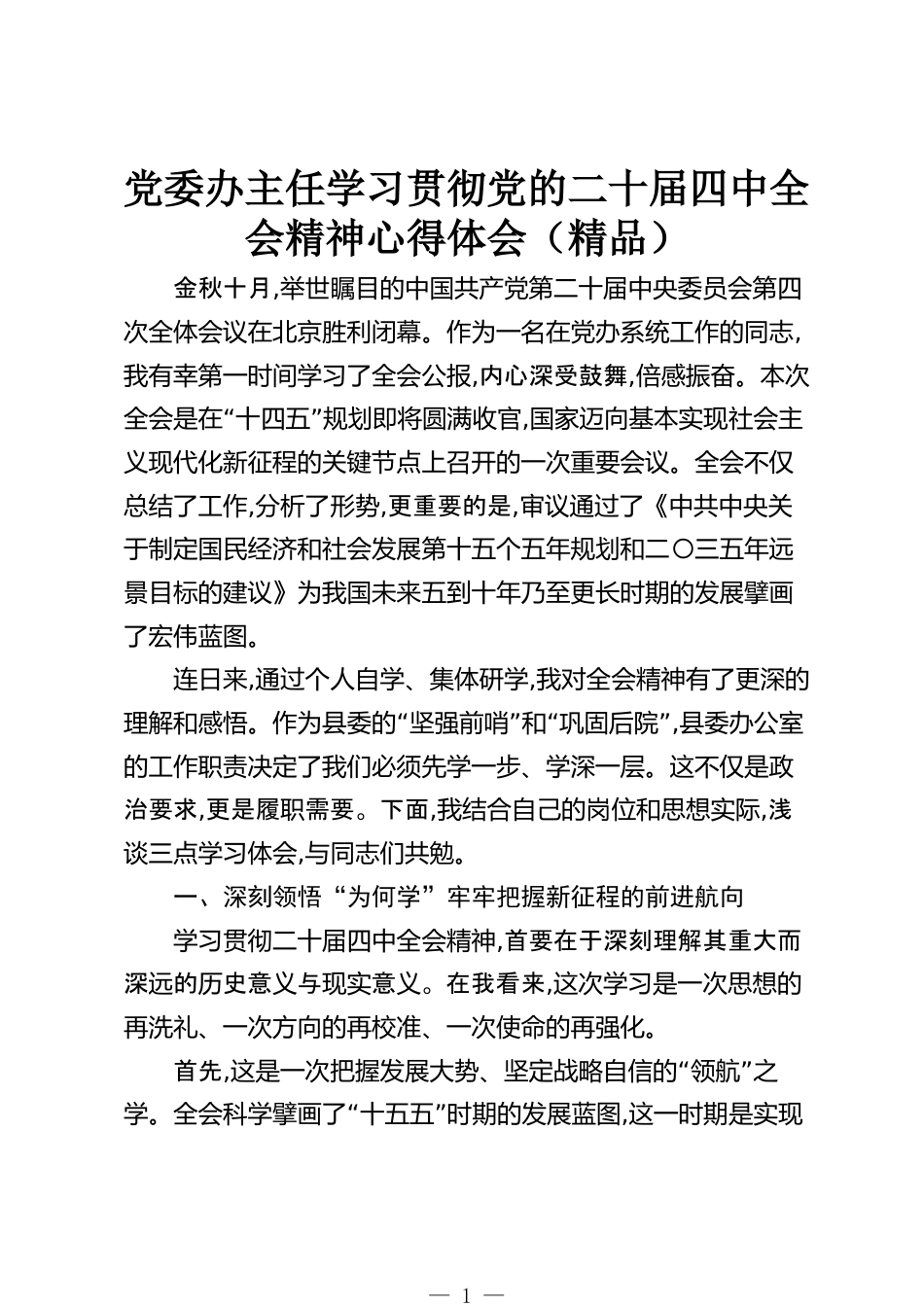 黨委辦主任學(xué)習(xí)貫徹黨的二十屆四中全會(huì)精神心得體會(huì)(精品)