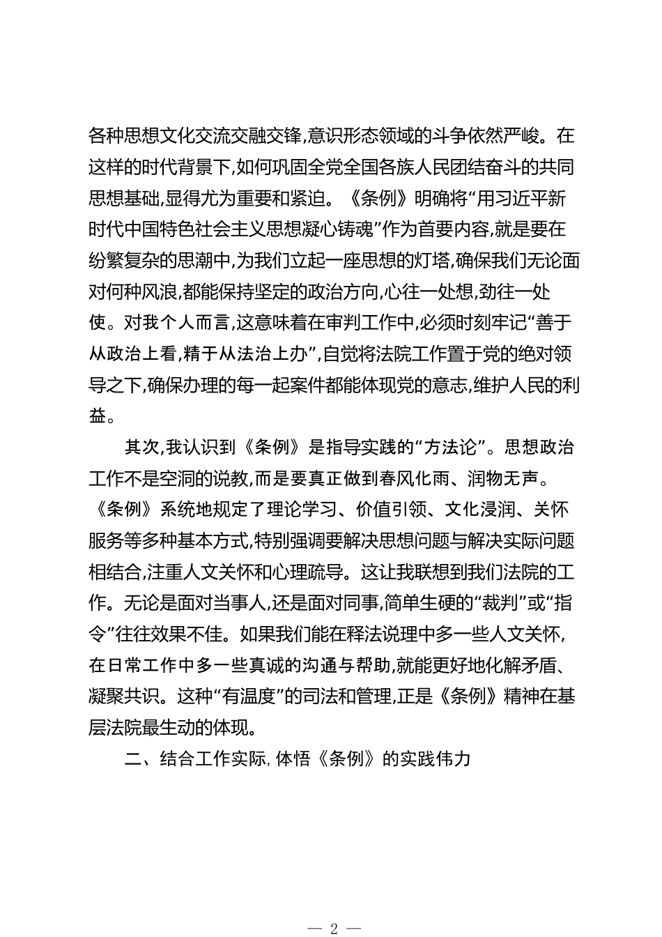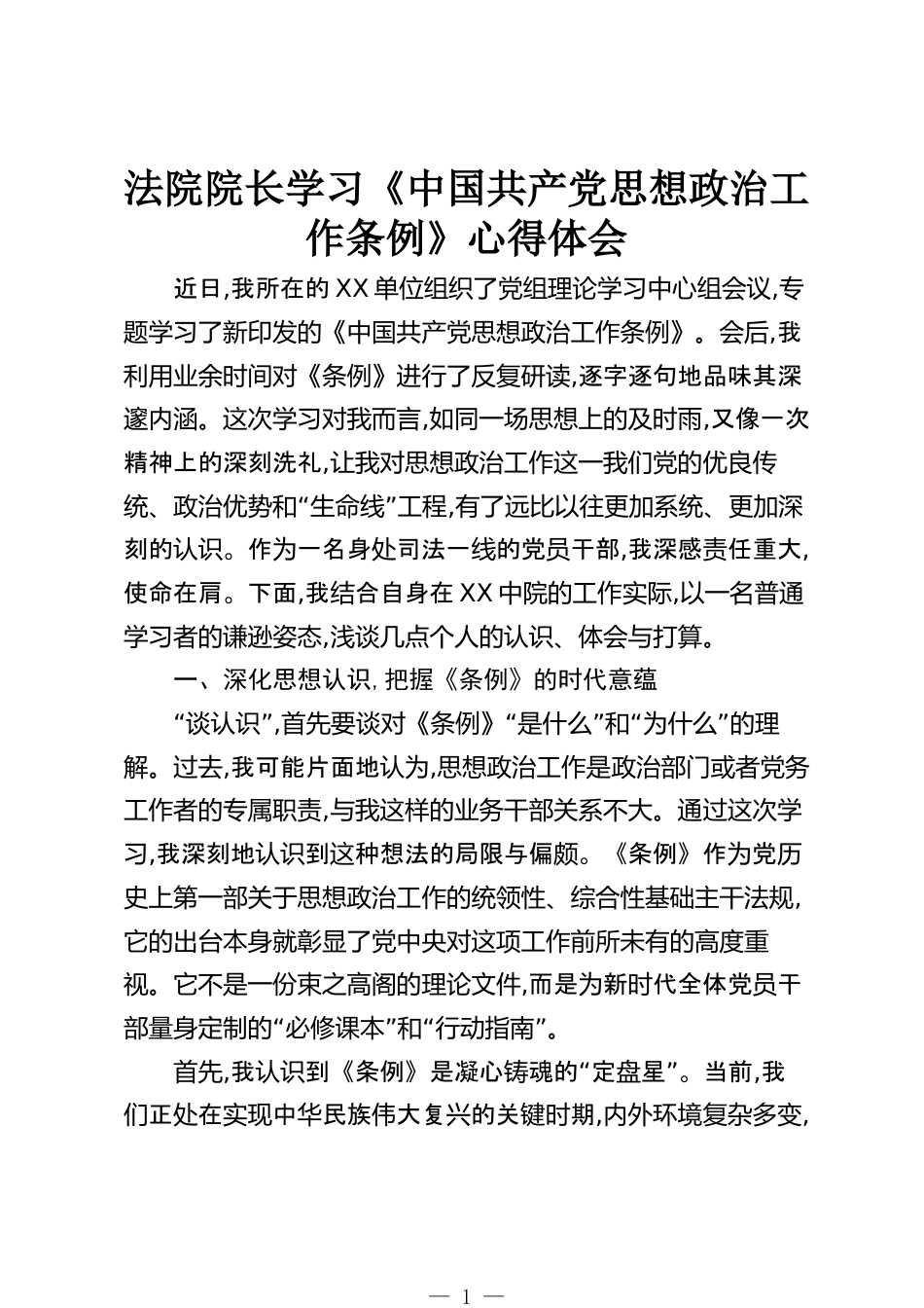 法院院長學(xué)習(xí)《中國共產(chǎn)黨思想政治工作條例》心得體會
