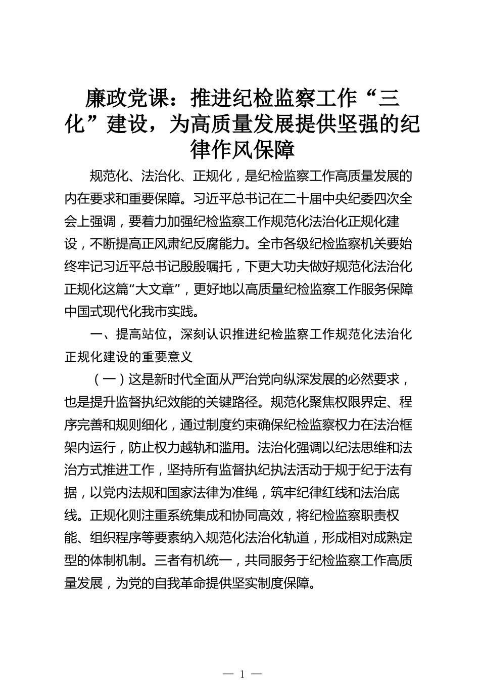 廉政黨課:推進紀檢監(jiān)察工作“三化”建設(shè),為高質(zhì)量發(fā)展提供堅強的紀律作風(fēng)保障