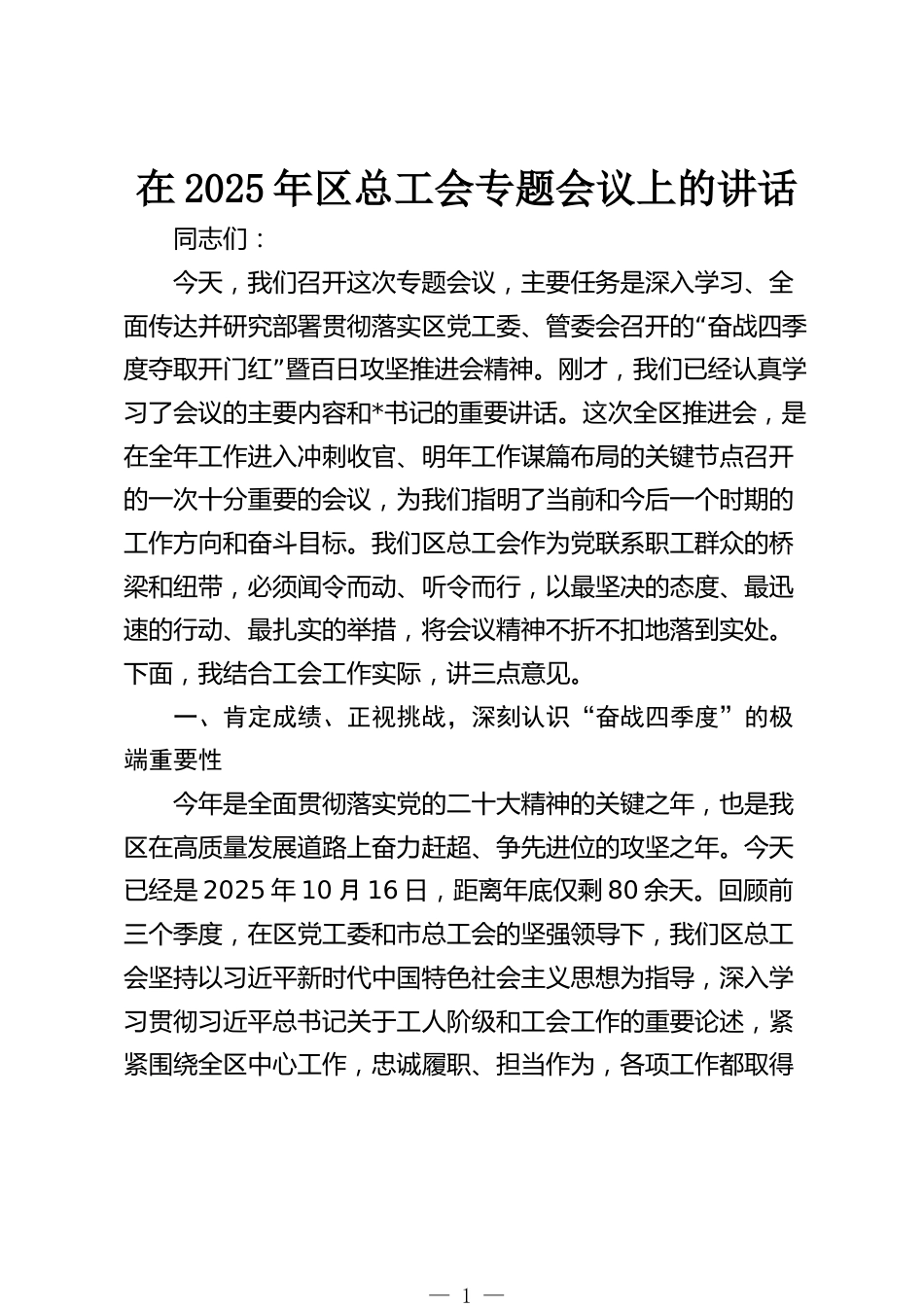 在2025年區(qū)總工會(huì)專題會(huì)議上的講話