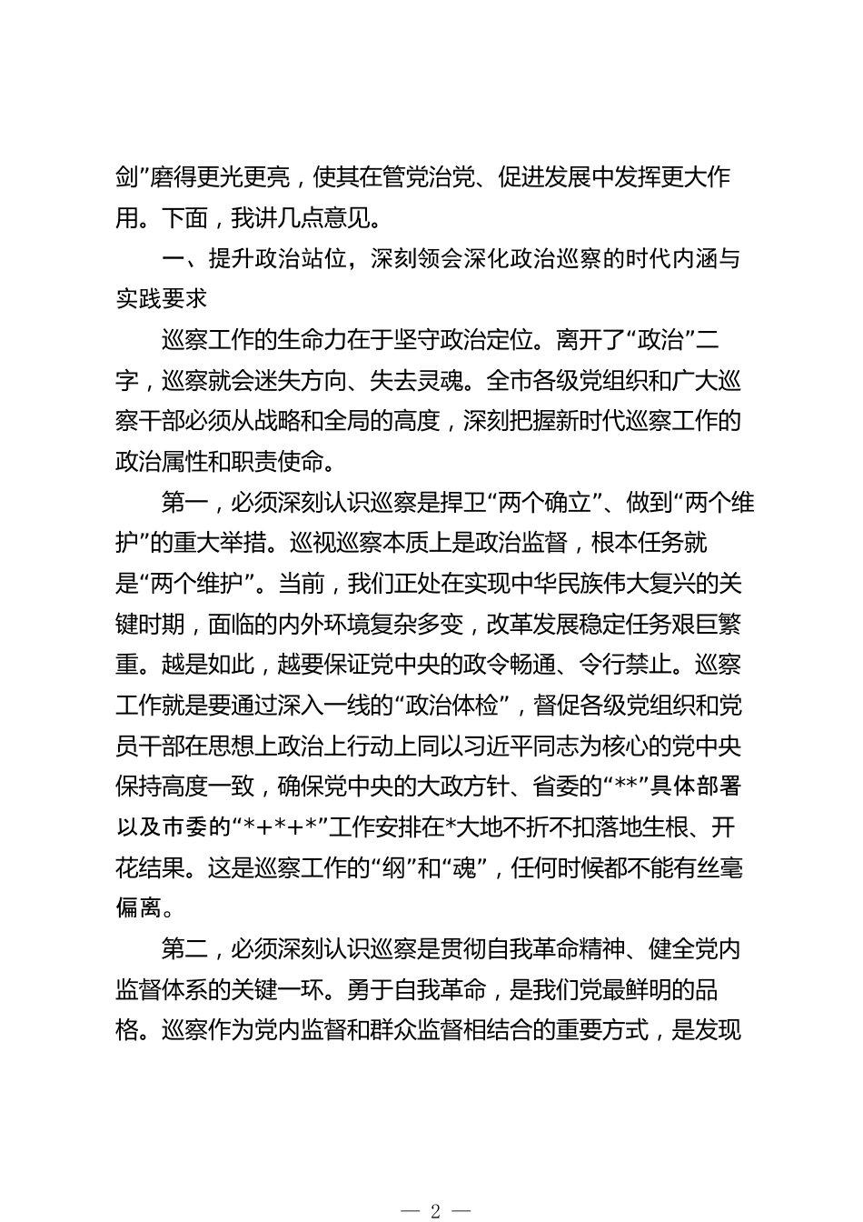 在2025年全市巡察工作會(huì)議暨八屆市委第八輪巡察動(dòng)員部署會(huì)上的講話同志們:今天,我們?cè)谶@里召開全市巡察工作會(huì)議暨八屆市委第八輪巡察動(dòng)員部署會(huì),主要任務(wù)是深入學(xué)習(xí)貫徹習(xí)近平總書記關(guān)于黨的自我革命的重要思想、關(guān)于巡視工作的重要論述,全面落實(shí)全國巡視工作會(huì)議和全省巡視巡察工作會(huì)議精神,總結(jié)近年來的巡察工作,研究部署當(dāng)前和今后一個(gè)時(shí)期的任務(wù),并對(duì)八屆市委第八輪巡察工作進(jìn)行動(dòng)員部署。黨的十八大以來,以習(xí)近平同志為核心的黨中央以前所未有的決心和力度推進(jìn)全面從嚴(yán)治黨,把巡視作為推進(jìn)黨的自我革命、全面從嚴(yán)治黨的戰(zhàn)略性制度安排。八屆市委以來,我們...