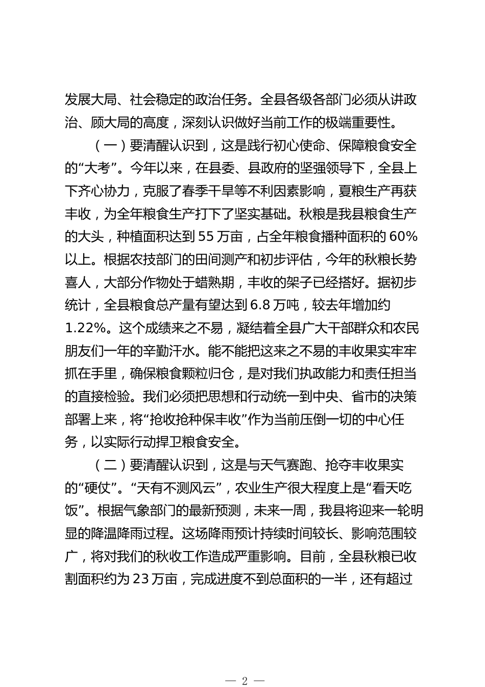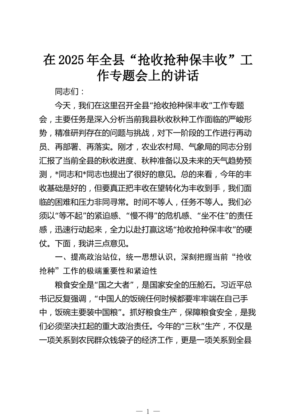 在2025年全縣“搶收搶種保豐收”工作專題會上的講話