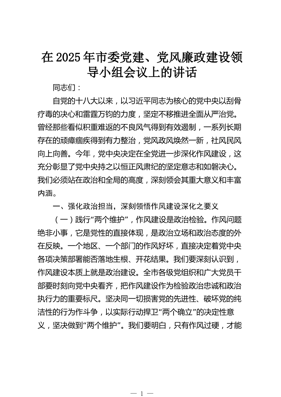 在2025年市委黨建、黨風(fēng)廉政建設(shè)領(lǐng)導(dǎo)小組會議上的講話