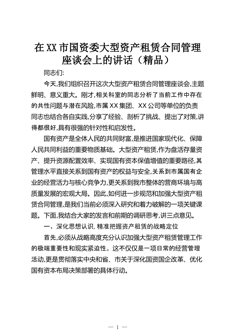 在XX市國資委大型資產(chǎn)租賃合同管理座談會上的講話(精品)