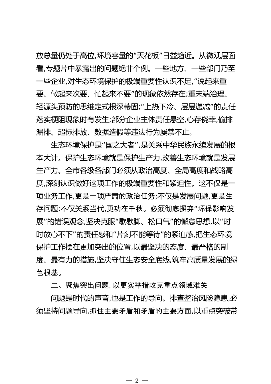 在XX市生態(tài)環(huán)境領(lǐng)域風(fēng)險(xiǎn)隱患排查整治工作調(diào)度會(huì)議上的講話同志們:剛才,我們共同觀看了一部暗查暗訪的專題片。片中曝光的問題,觸目驚心、發(fā)人深省。這些問題不僅是業(yè)務(wù)層面的瑕疵,更是思想認(rèn)識(shí)上的差距和工作作風(fēng)上的頑疾。今天我們召開這次調(diào)度會(huì)議,目的非常明確,就是要直面問題、剖析根源,對全市生態(tài)環(huán)境領(lǐng)域的風(fēng)險(xiǎn)隱患排查整治工作進(jìn)行再動(dòng)員、再部署、再落實(shí)。生態(tài)環(huán)境保護(hù),事關(guān)發(fā)展全局,事關(guān)民生福祉,是一場退無可退、必須打贏的硬仗。下面,我講幾點(diǎn)意見。一、正視嚴(yán)峻形勢,以更高站位筑牢生態(tài)安全屏障近年來,全市上下深入貫徹國家生態(tài)文明思想,牢固樹立和踐“”行綠...