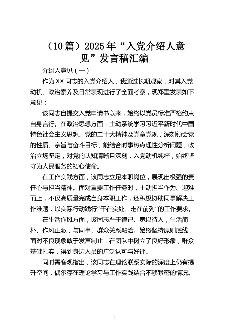 (10篇)2025年“入黨介紹人意見”發(fā)言稿匯編