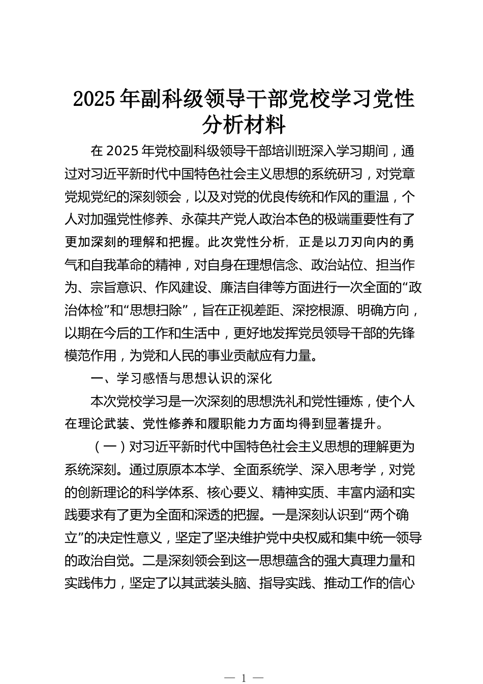 2025年副科級領(lǐng)導(dǎo)干部黨校學(xué)習(xí)黨性分析材料