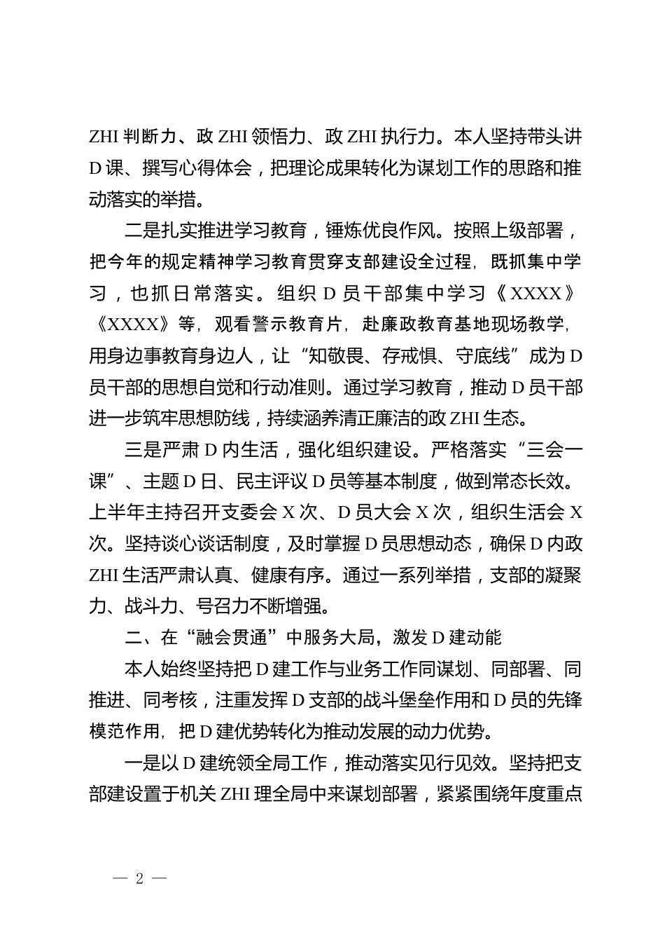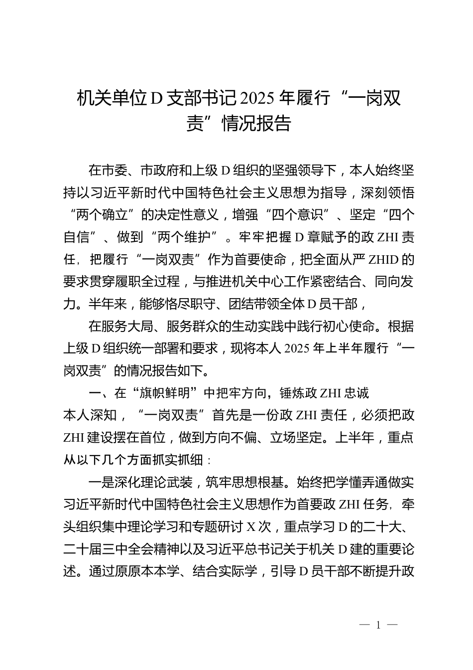 D支部書記2025年履行“一崗雙責”情況報告