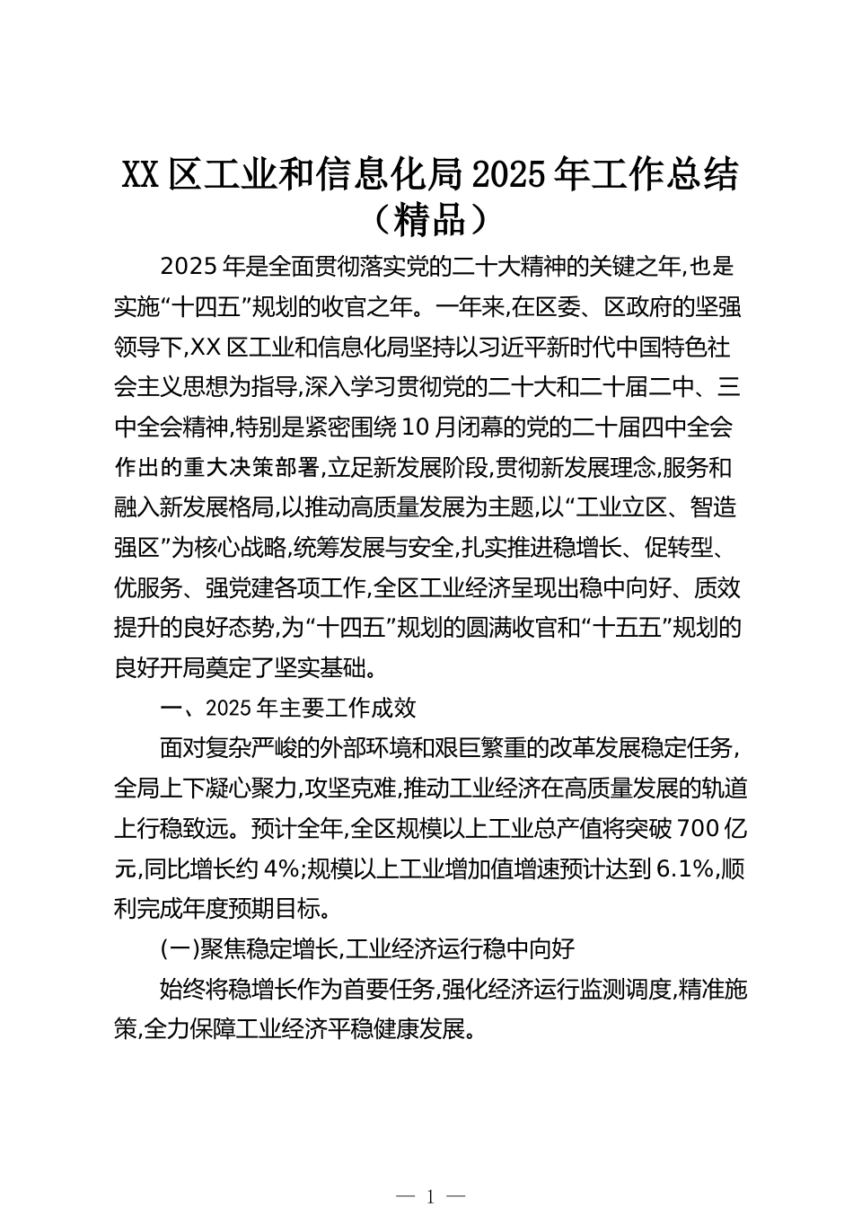 XX區(qū)工業(yè)和信息化局2025年工作總結(jié)(精品)