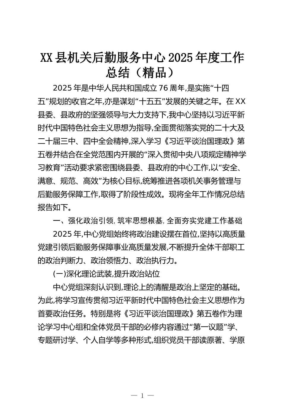 XX縣機(jī)關(guān)后勤服務(wù)中心2025年度工作總結(jié)(精品)