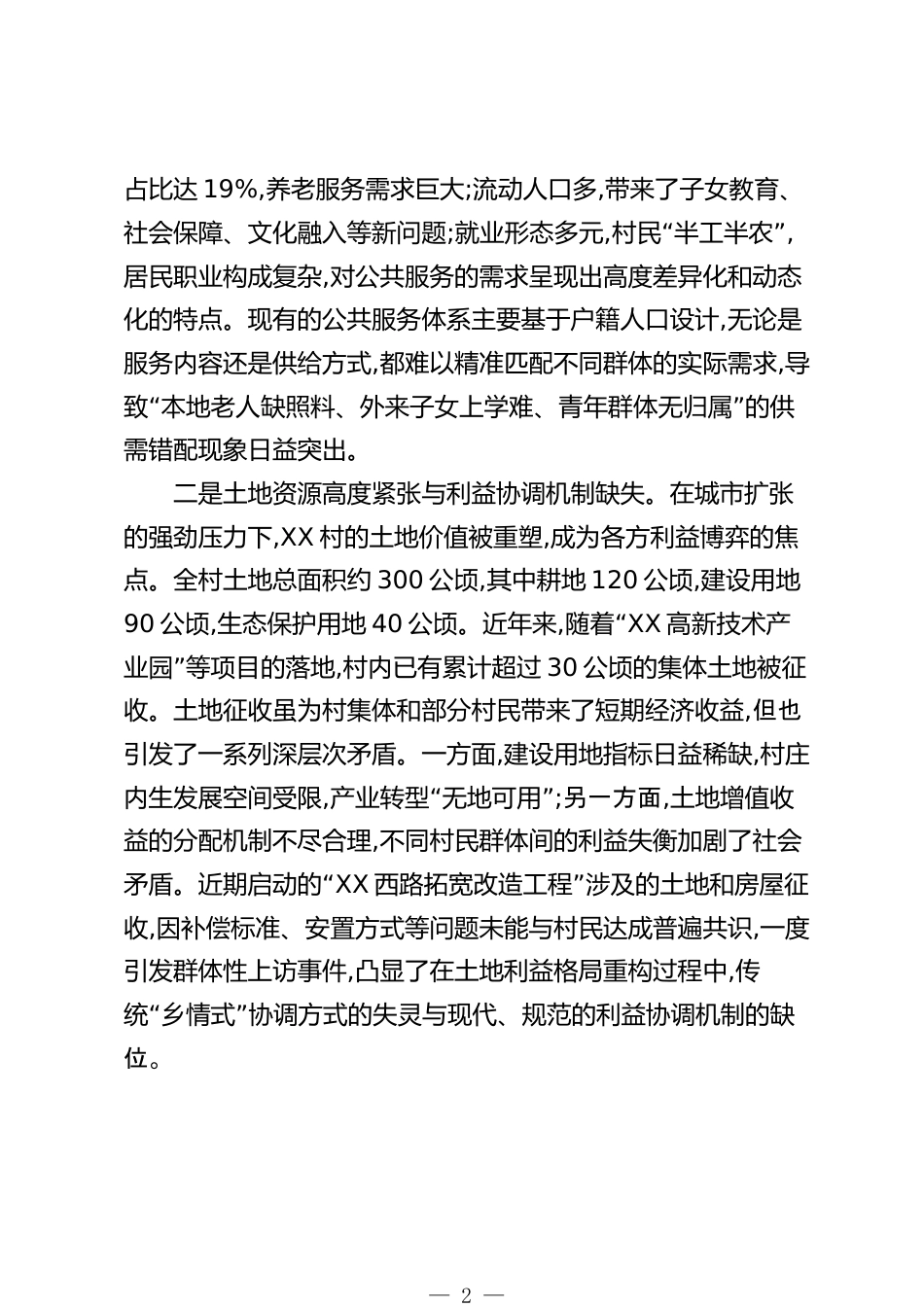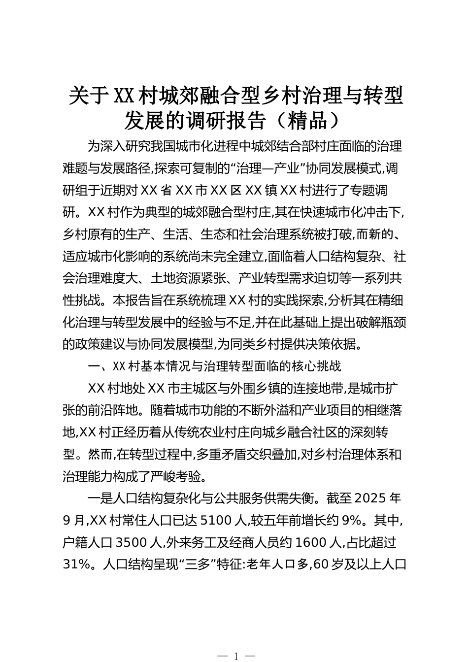關(guān)于XX村城郊融合型鄉(xiāng)村治理與轉(zhuǎn)型發(fā)展的調(diào)研報告(精品)