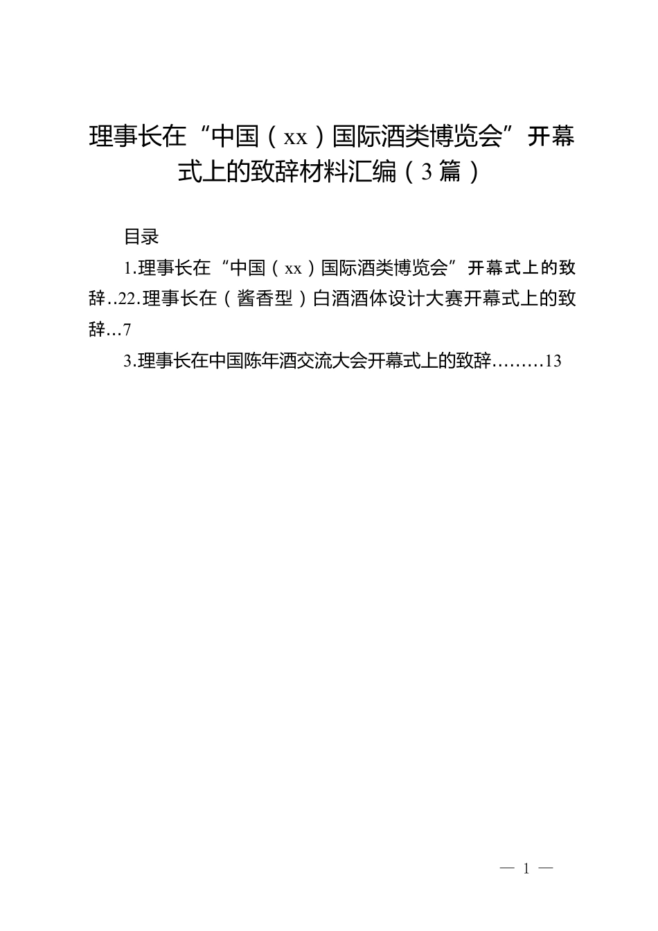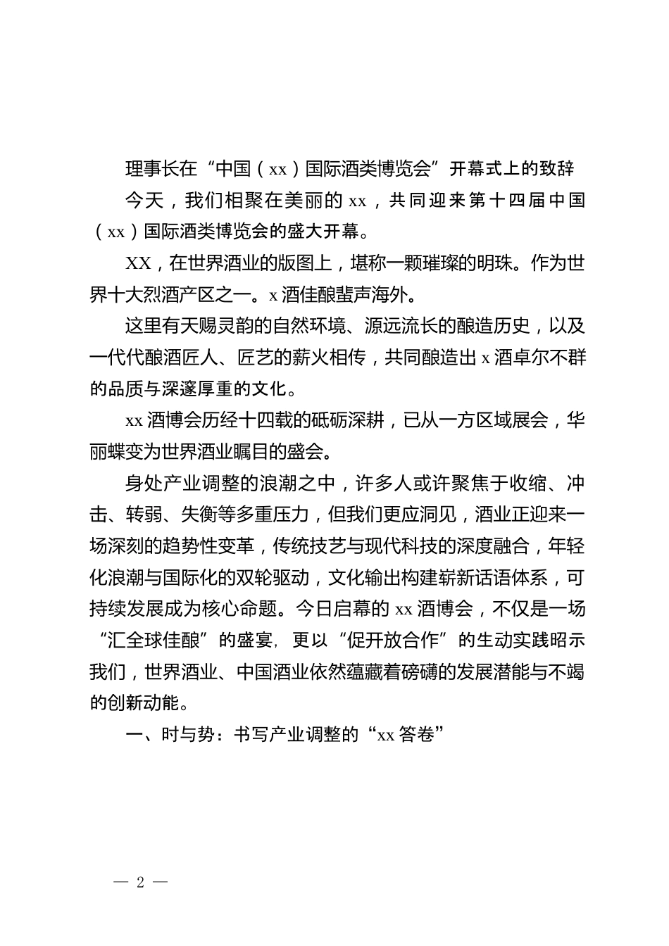 理事長在“中國國際酒類博覽會”開幕式上的致辭材料匯編(3篇)