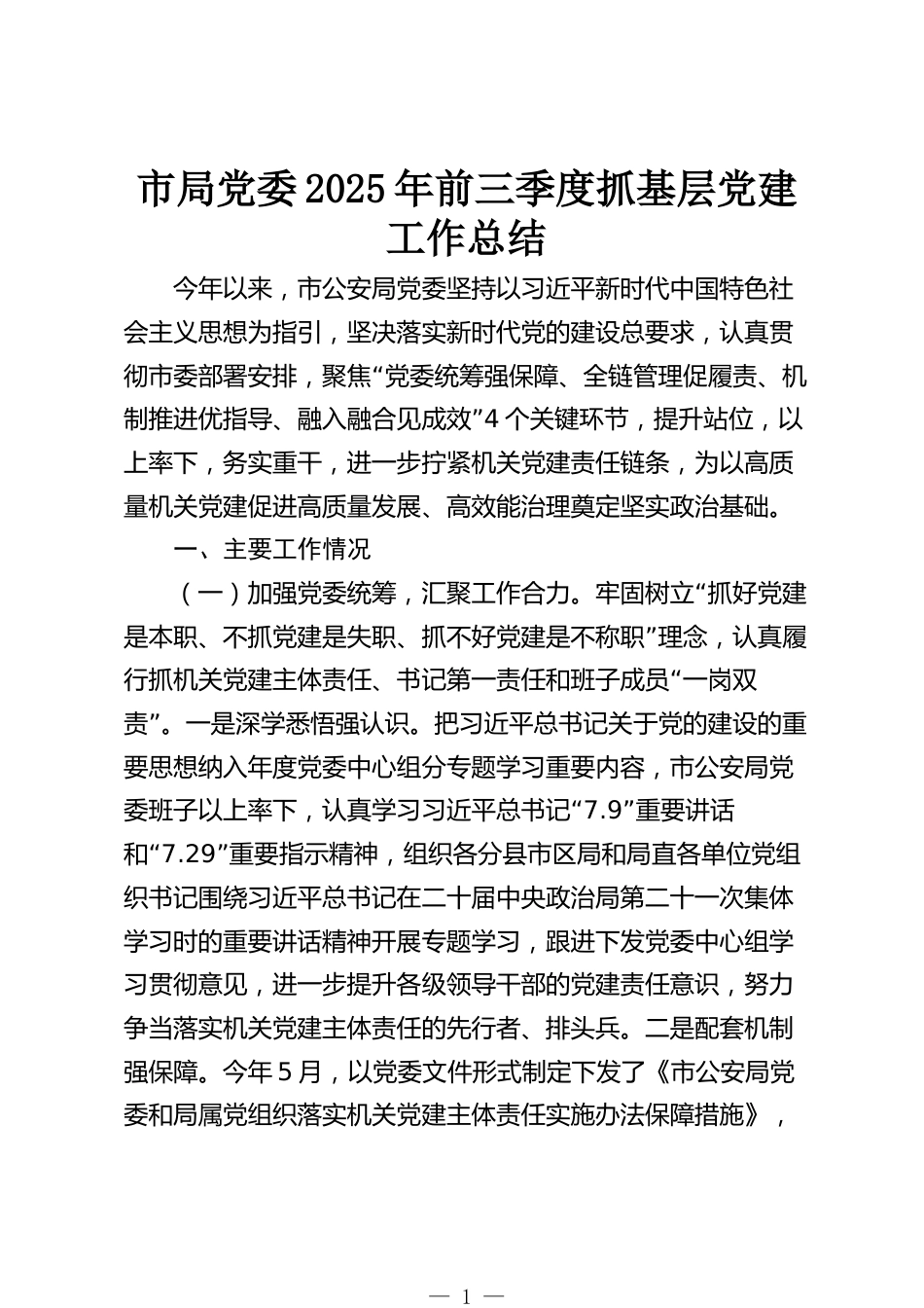 市局黨委2025年前三季度抓基層黨建工作總結(jié)