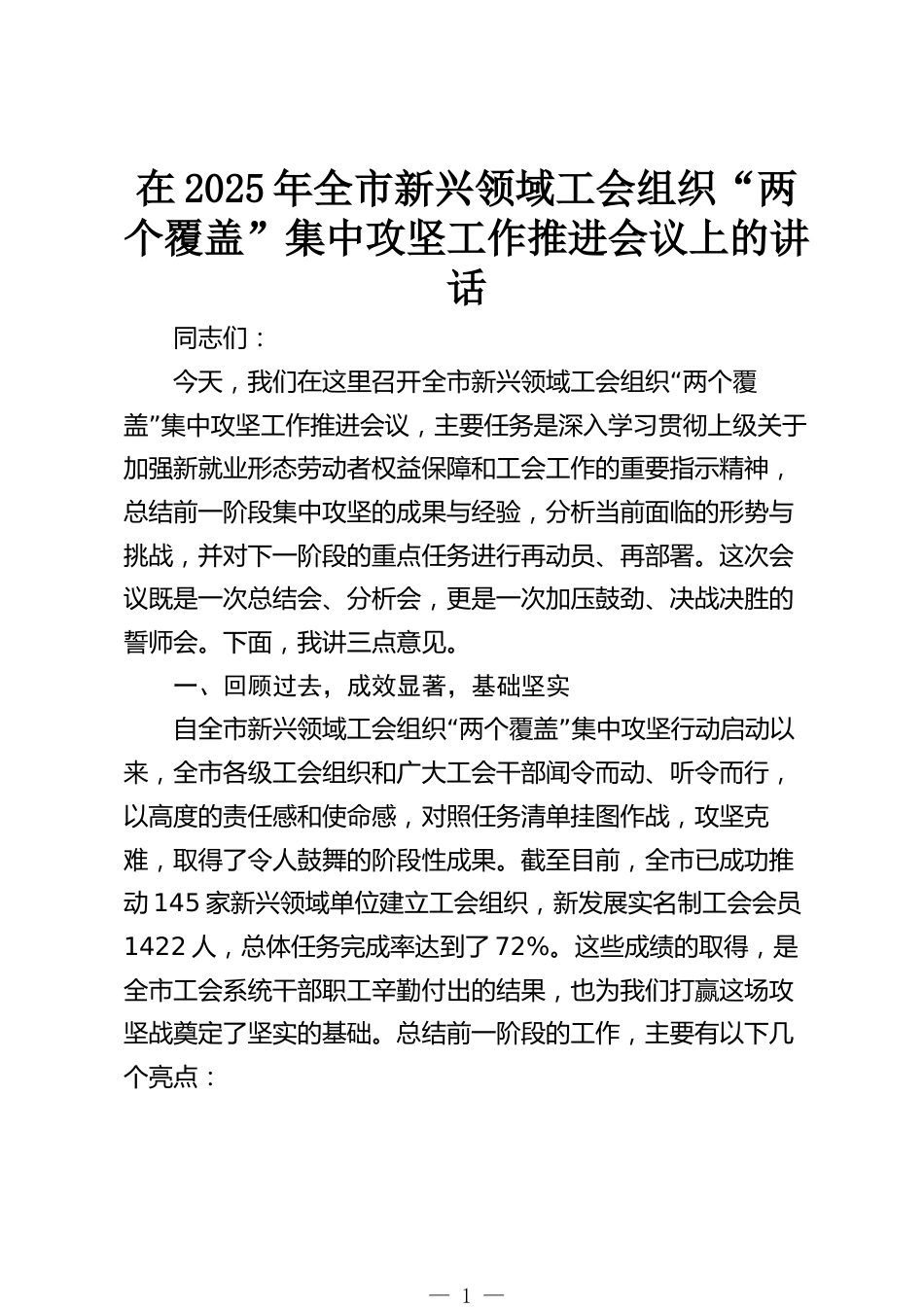 在2025年全市新興領(lǐng)域工會組織“兩個覆蓋”集中攻堅工作推進會議上的講話