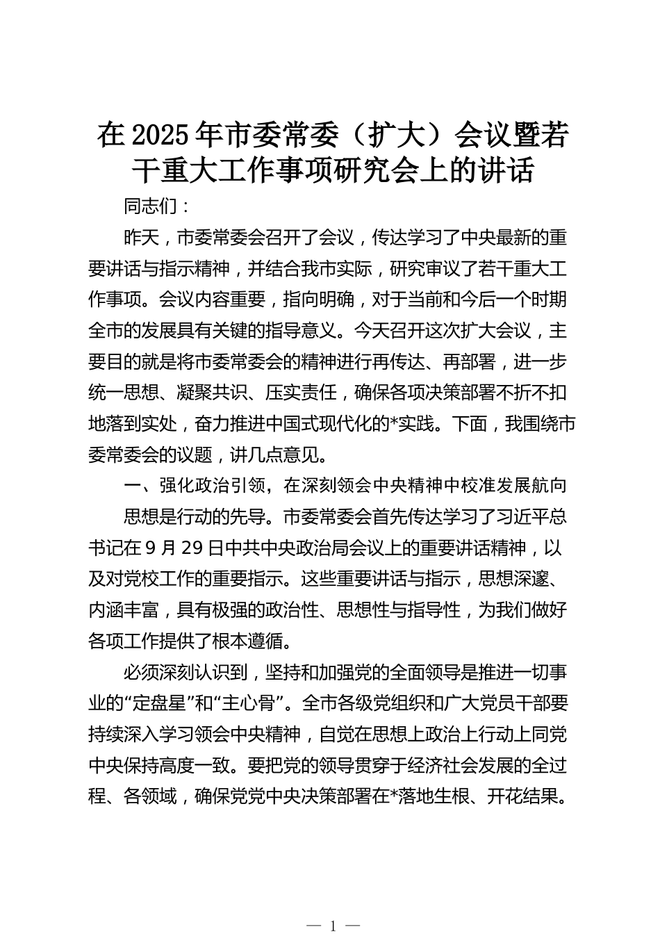 在2025年市委常委(擴(kuò)大)會(huì)議暨若干重大工作事項(xiàng)研究會(huì)上的講話(huà)