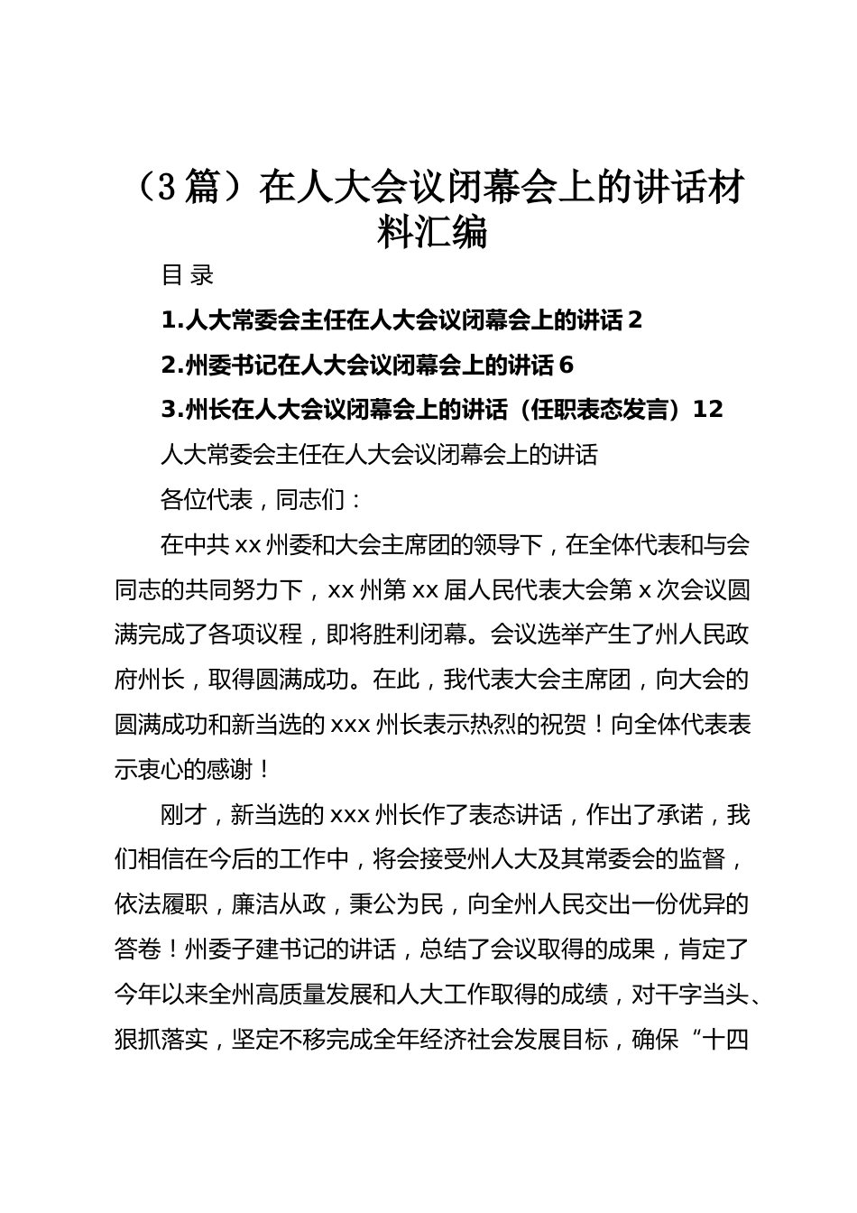 (3篇)在人大會(huì)議閉幕會(huì)上的講話材料匯編