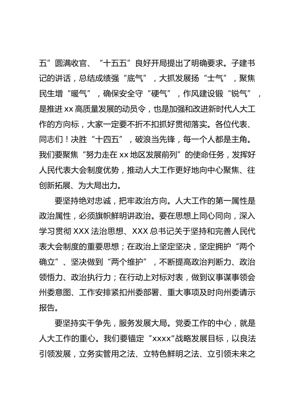 (3篇)在人大會(huì)議閉幕會(huì)上的講話材料匯編目錄1.人大常委會(huì)主任在人大會(huì)議閉幕會(huì)上的講話22.州委書(shū)記在人大會(huì)議閉幕會(huì)上的講話63.州長(zhǎng)在人大會(huì)議閉幕會(huì)上的講話(任職表態(tài)發(fā)言)12人大常委會(huì)主任在人大會(huì)議閉幕會(huì)上的講話各位代表,同志們:在中共xx州委和大會(huì)主席團(tuán)的領(lǐng)導(dǎo)下,在全體代表和與會(huì)同志的共同努力下,xx州第xx屆人民代表大會(huì)第x次會(huì)議圓滿完成了各項(xiàng)議程,即將勝利閉幕。會(huì)議選舉產(chǎn)生了州人民政府州長(zhǎng),取得圓滿成功。在此,我代表大會(huì)主席團(tuán),向大會(huì)的圓滿成功和新當(dāng)選的xxx州長(zhǎng)表示熱烈的祝賀!向全體代表表示衷心的感謝!剛才,新當(dāng)選的xxx州長(zhǎng)作了表態(tài)講...