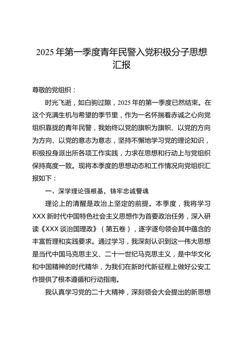 2025 年第一季度青年民警入黨積極分子思想匯報