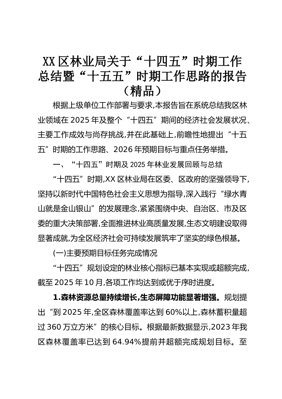XX區(qū)林業(yè)局關(guān)于“十四五”時(shí)期工作總結(jié)暨“十五五”時(shí)期工作思路的報(bào)告(精品)