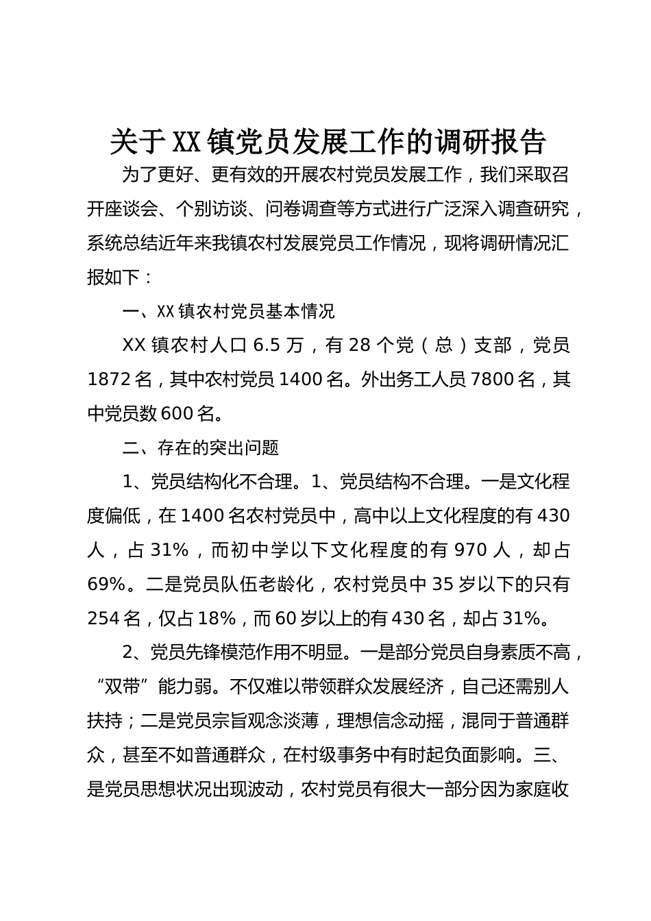 關(guān)于XX鎮(zhèn)黨員發(fā)展工作的調(diào)研報(bào)告