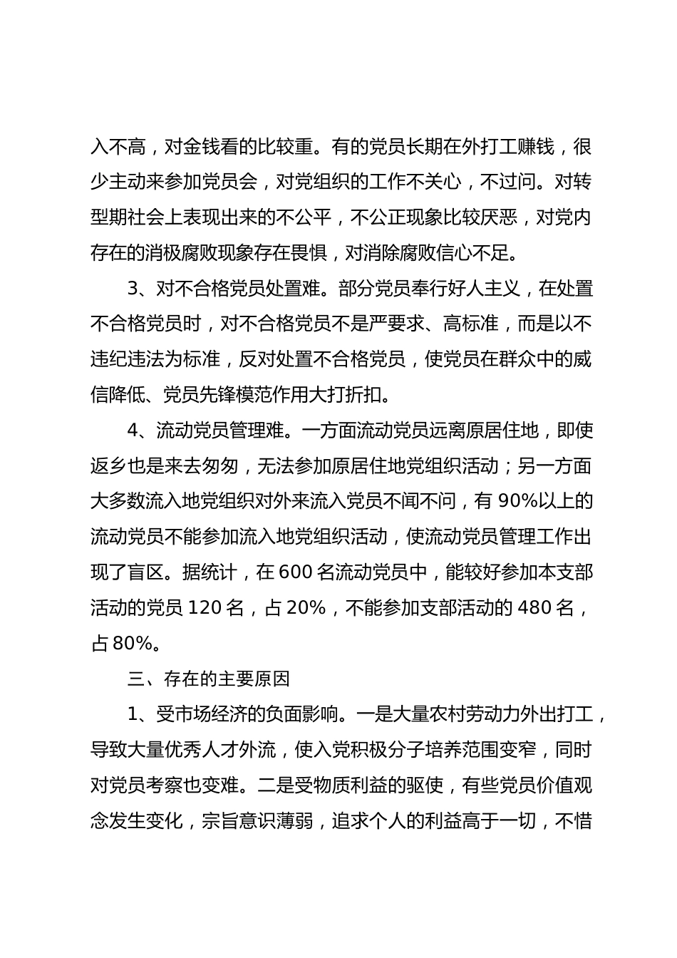 關(guān)于XX鎮(zhèn)黨員發(fā)展工作的調(diào)研報(bào)告為了更好、更有效的開(kāi)展農(nóng)村黨員發(fā)展工作,我們采取召開(kāi)座談會(huì)、個(gè)別訪談、問(wèn)卷調(diào)查等方式進(jìn)行廣泛深入調(diào)查研究,系統(tǒng)總結(jié)近年來(lái)我鎮(zhèn)農(nóng)村發(fā)展黨員工作情況,現(xiàn)將調(diào)研情況匯報(bào)如下:一、XX鎮(zhèn)農(nóng)村黨員基本情況XX鎮(zhèn)農(nóng)村人口6.5萬(wàn),有28個(gè)黨(總)支部,黨員1872名,其中農(nóng)村黨員1400名。外出務(wù)工人員7800名,其中黨員數(shù)600名。二、存在的突出問(wèn)題1、黨員結(jié)構(gòu)化不合理。1、黨員結(jié)構(gòu)不合理。一是文化程度偏低,在1400名農(nóng)村黨員中,高中以上文化程度的有430人,占31%,而初中學(xué)以下文化程度的有970人,卻占69%。二是黨員隊(duì)伍老齡化,農(nóng)村黨員中...