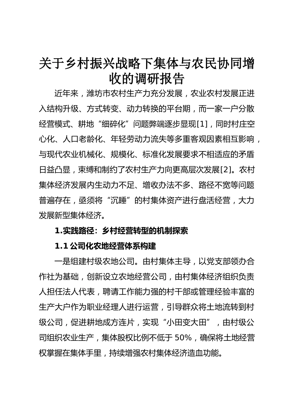 關(guān)于鄉(xiāng)村振興戰(zhàn)略下集體與農(nóng)民協(xié)同增收的調(diào)研報告